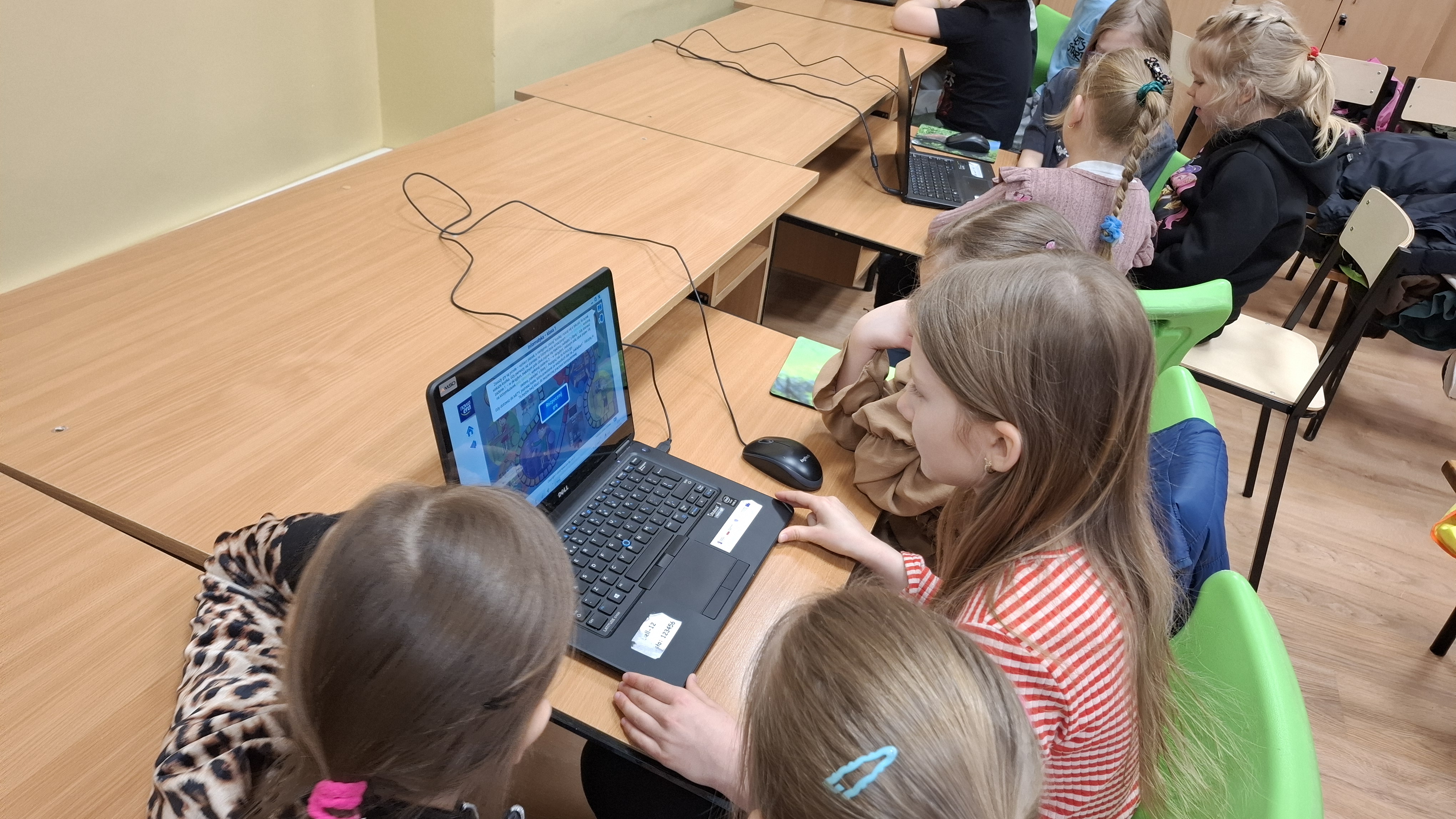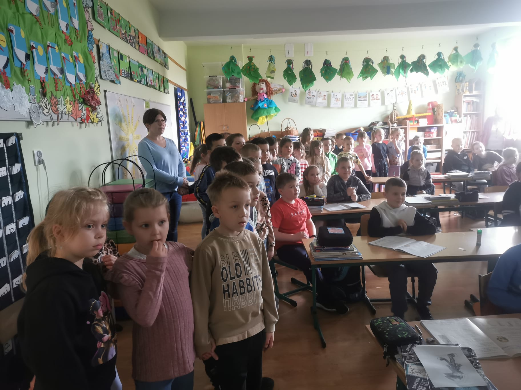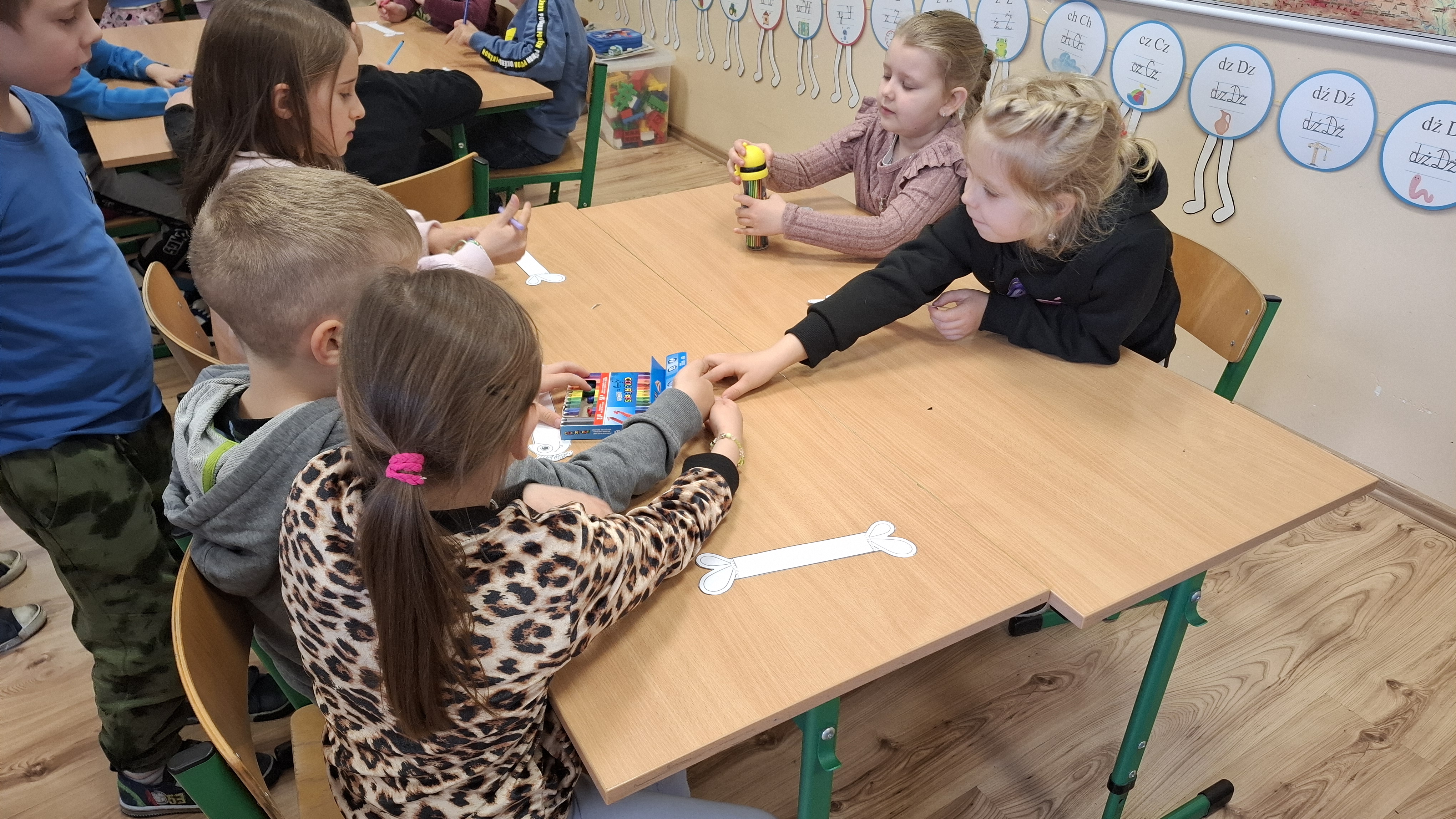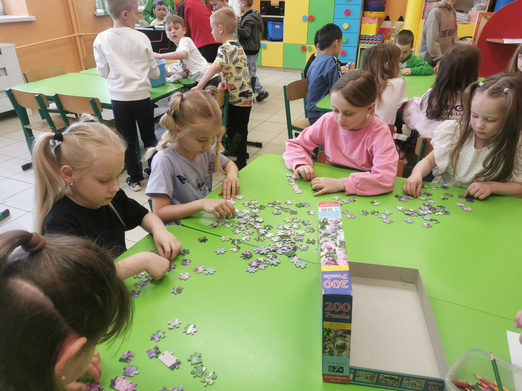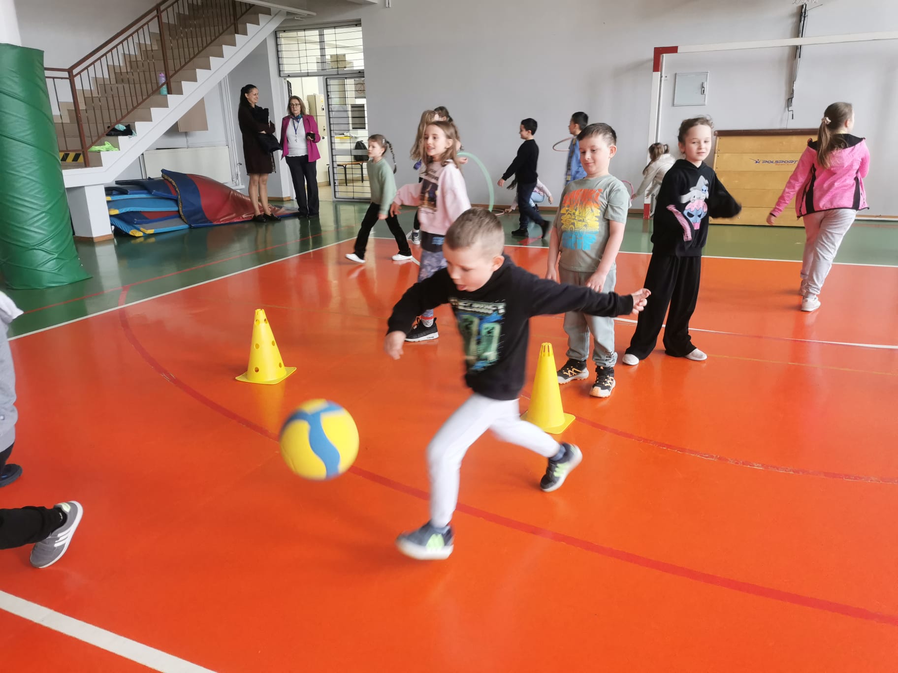 Gdy tylko przekroczyły próg szkoły, czekały na nich panie: Pani Marylka oraz Pani Ania. Przedszkolaki zwiedziły: sale lekcyjne, bibliotekę, salę gimnastyczną, która zrobiła na nich wielkie wrażenie, stołówkę. Brały udział w zabawach ruchowych, sprawnościowych, zajęciach plastycznych, grach i zabawach stolikowych.
