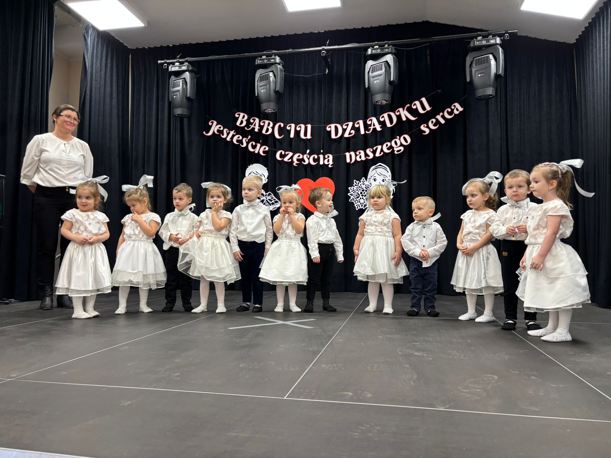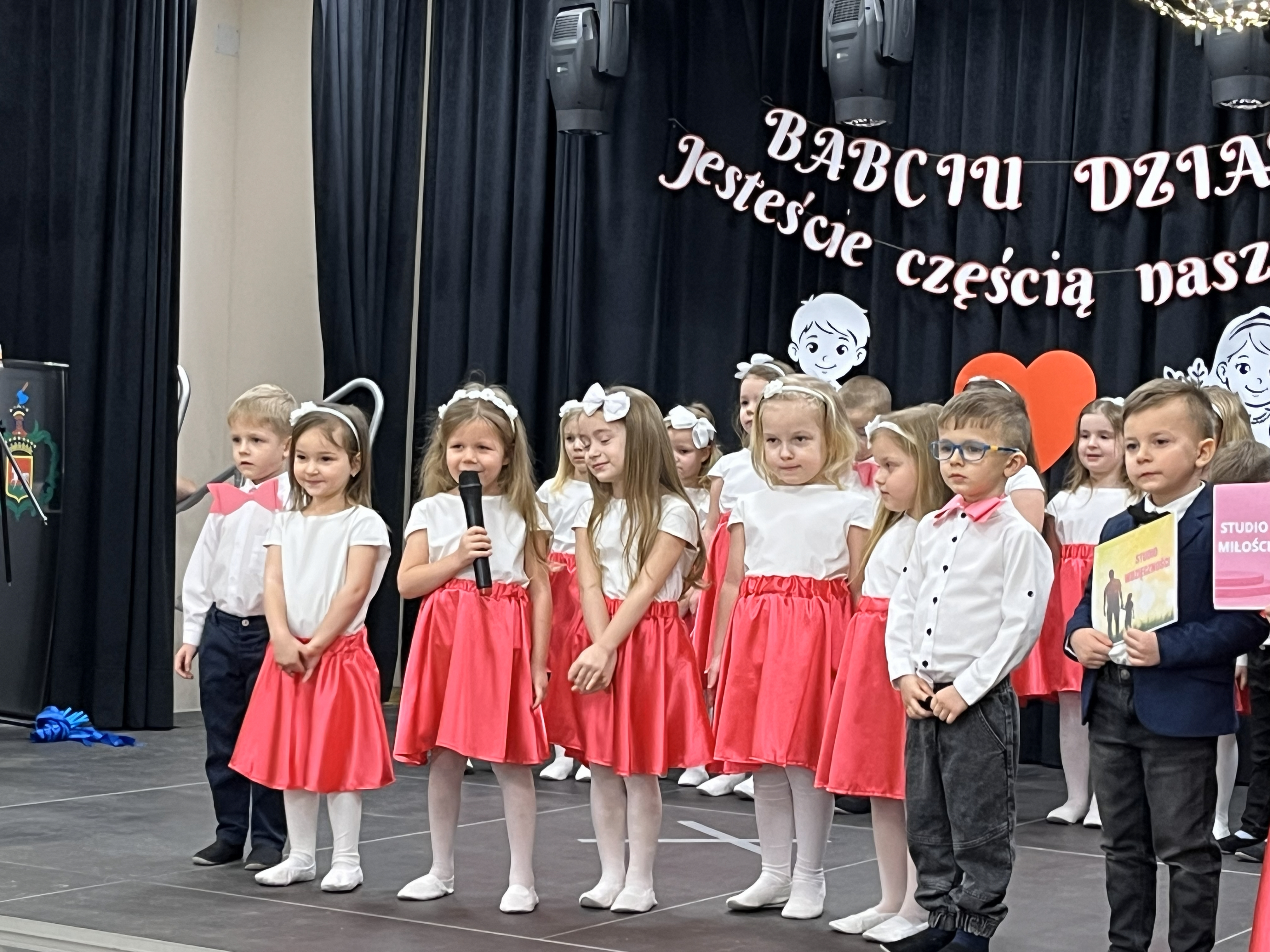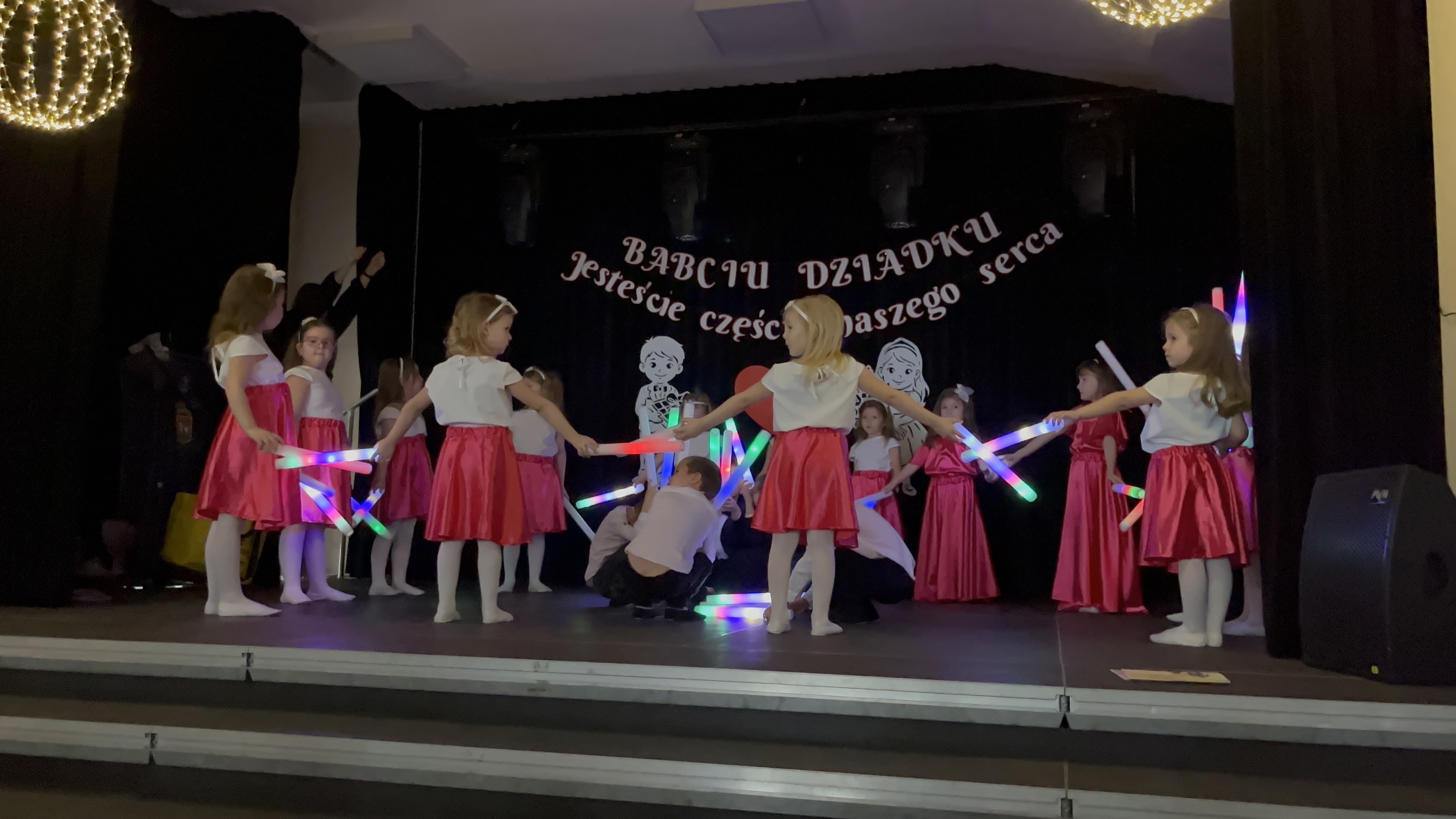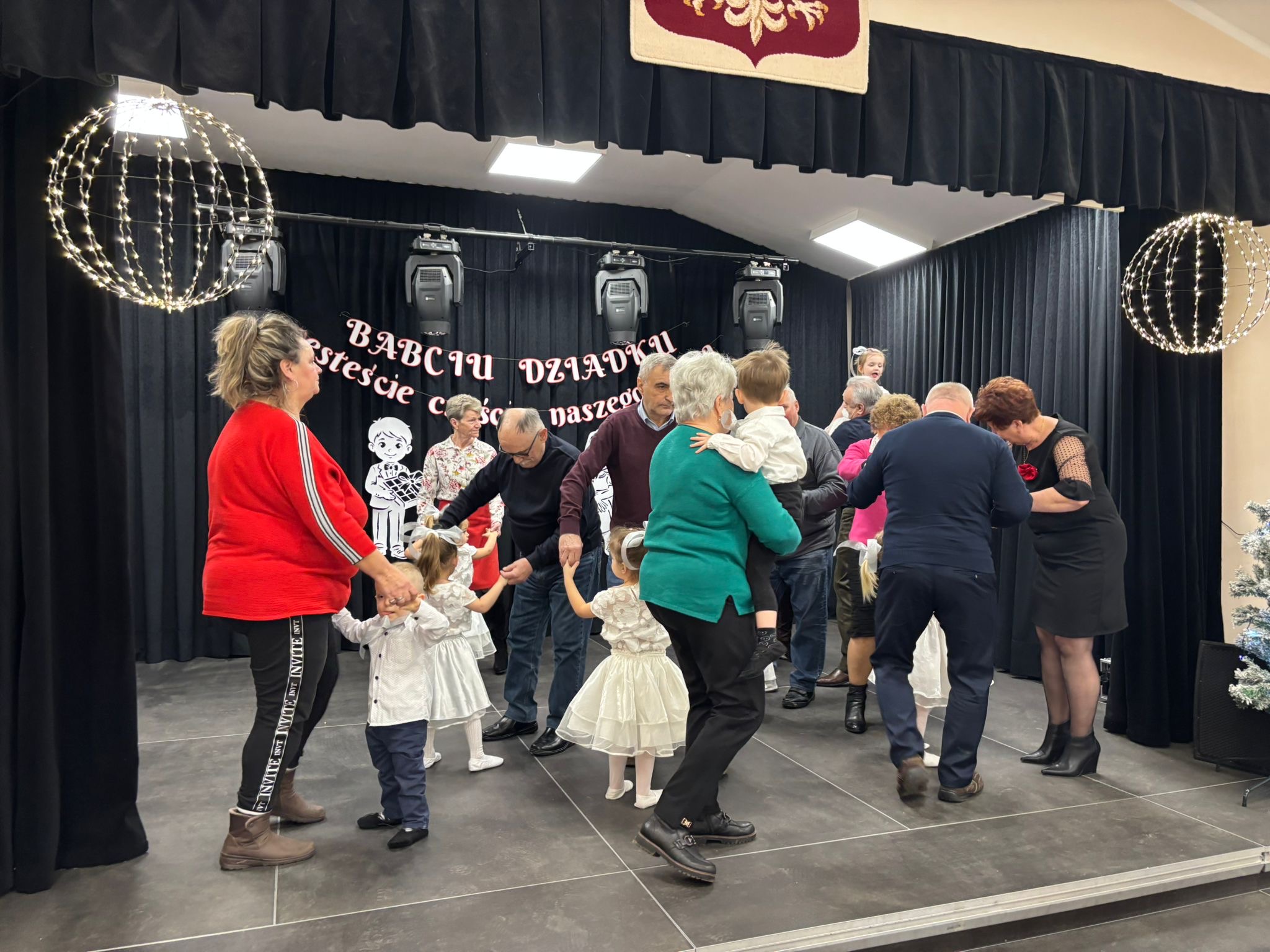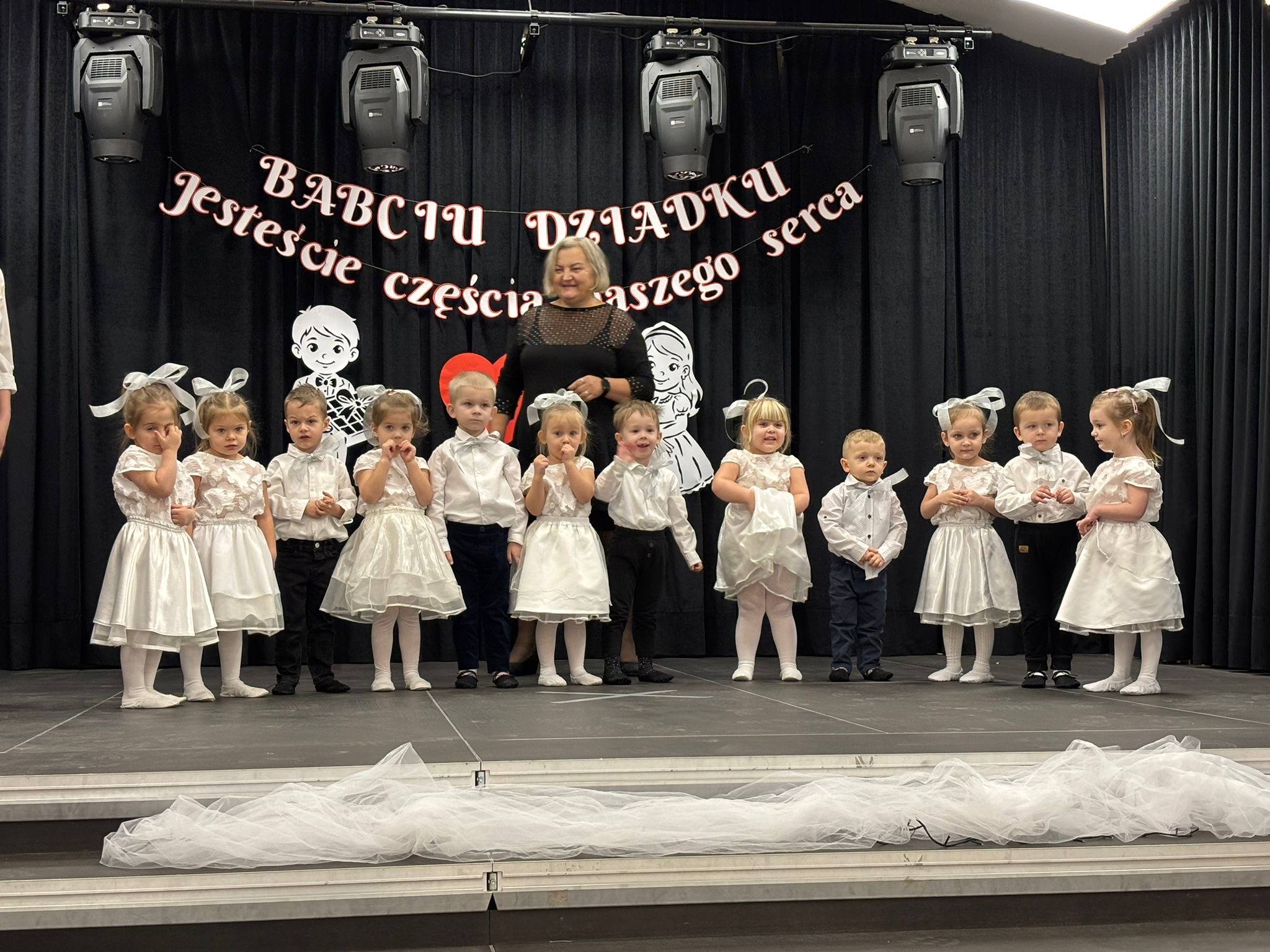 Maluszki z wielkim przejęciem śpiewały piosenki dedykowane Babciom i Dziadkom, prezentując swoje umiejętności artystyczne. Dzieci zaprezentowały również zimowy taniec ze wstążkami oraz radosne tańce z pokazywaniem, nawiązujące do zimowej aury i chęci „rozgrzania” serc swoich ukochanych gości. Na zakończenie występów każda wnuczka i każdy wnuczek mieli okazję zatańczyć wspólnie z Babcią i Dziadkiem, co było pięknym i bardzo wzruszającym zwieńczeniem tych wyjątkowych dni.
