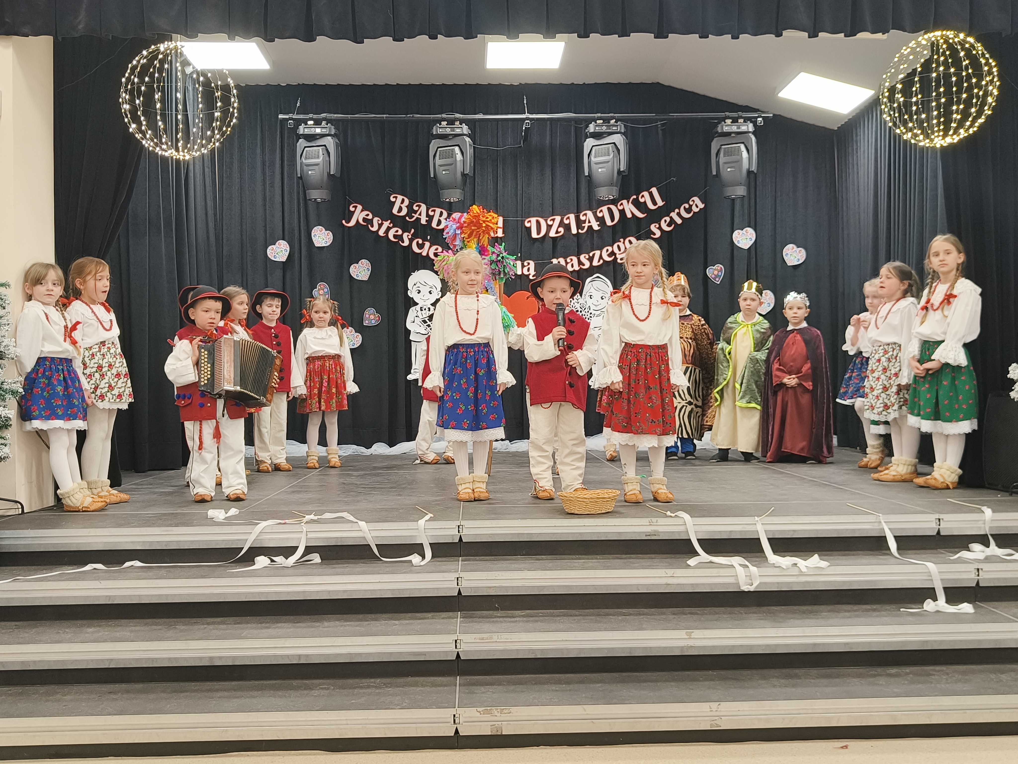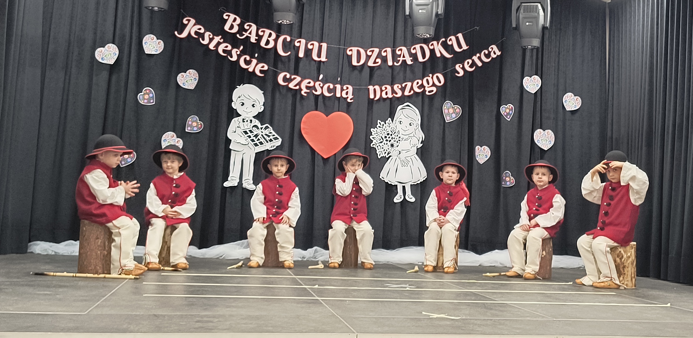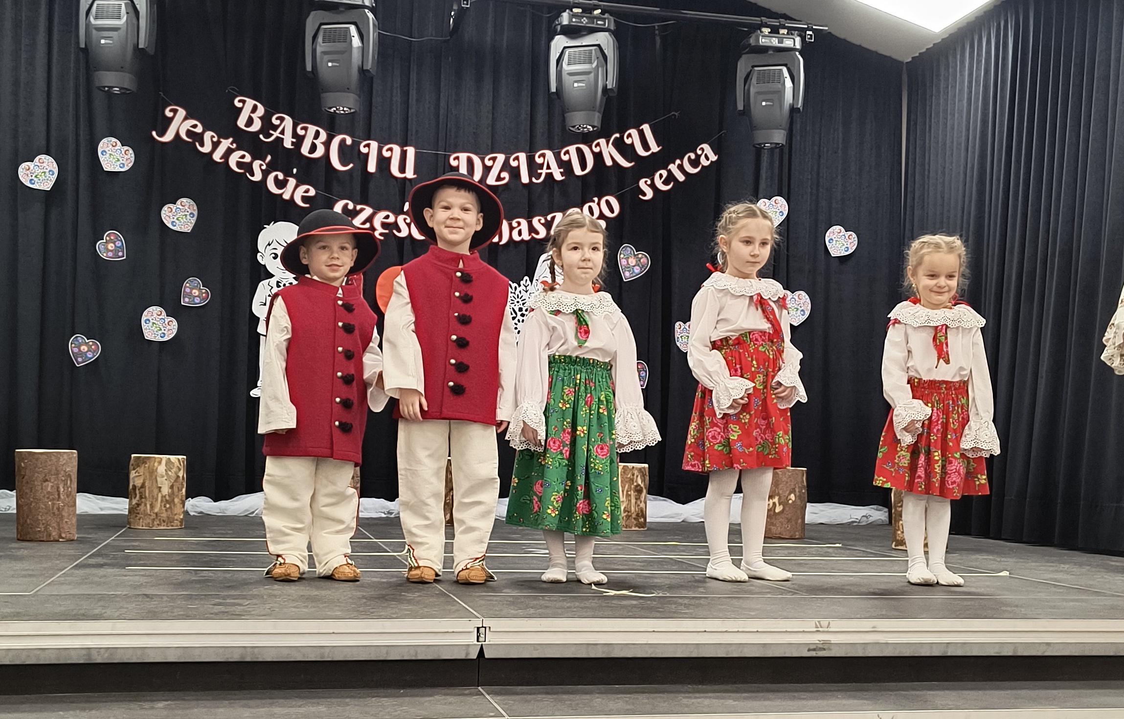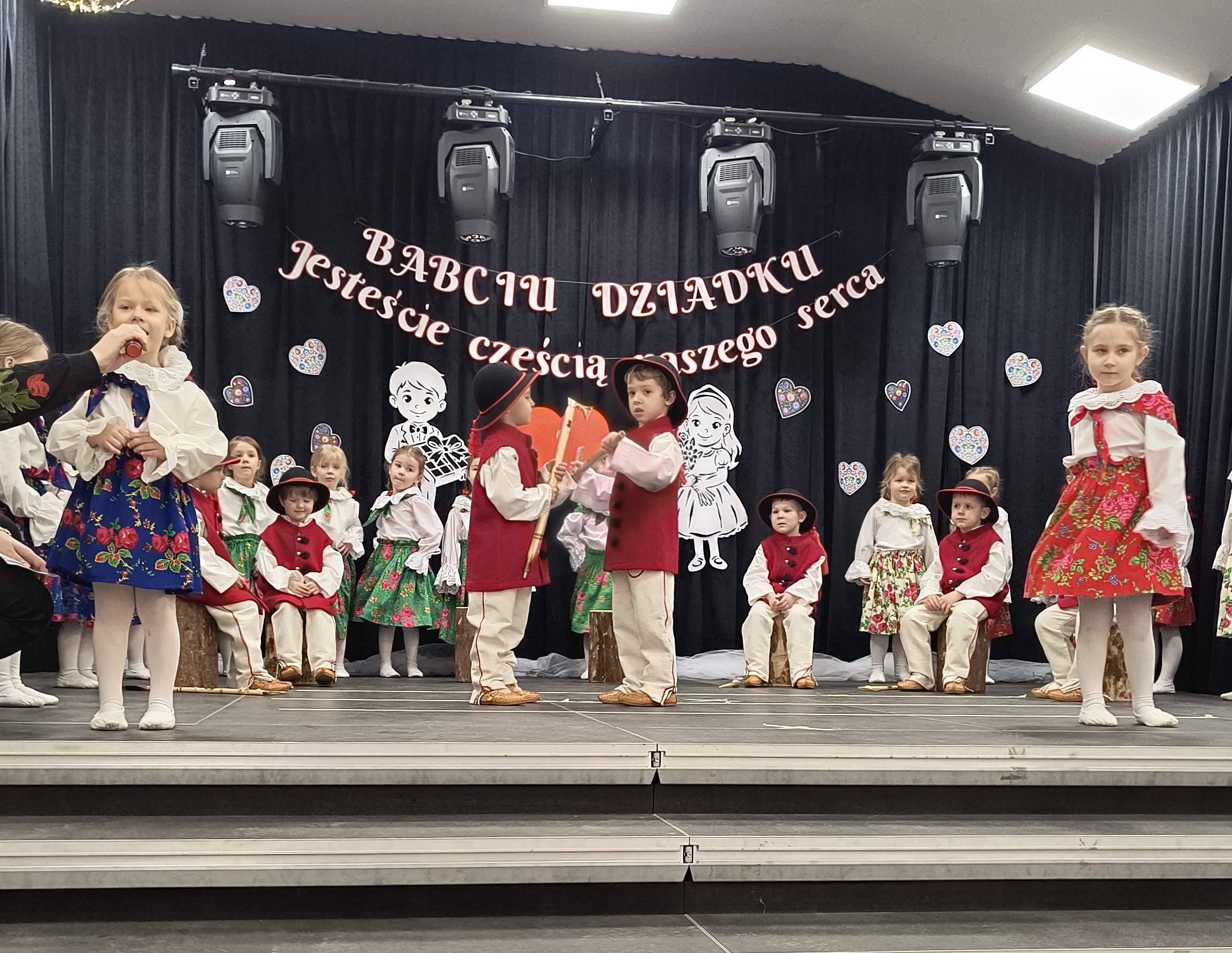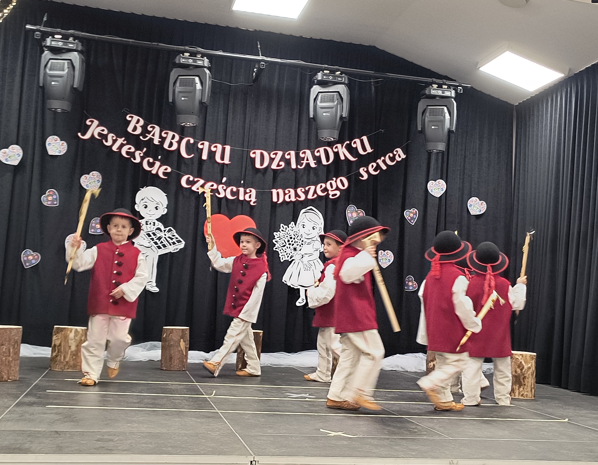 Oprawę artystyczną przygotowały również 4-latki, które gościły Babcie i Dziadków w klimacie góralskim. Uroczystość rozpoczęła się góralskim wstępem, po którym nastąpiło wejście małych górali przy piosence „W murowanej piwnicy” oraz małych góralek przy utworze „Młoda uroda”. Nie zabrakło tańców, piosenek, serdecznych życzeń oraz góralskiego śpiewu.