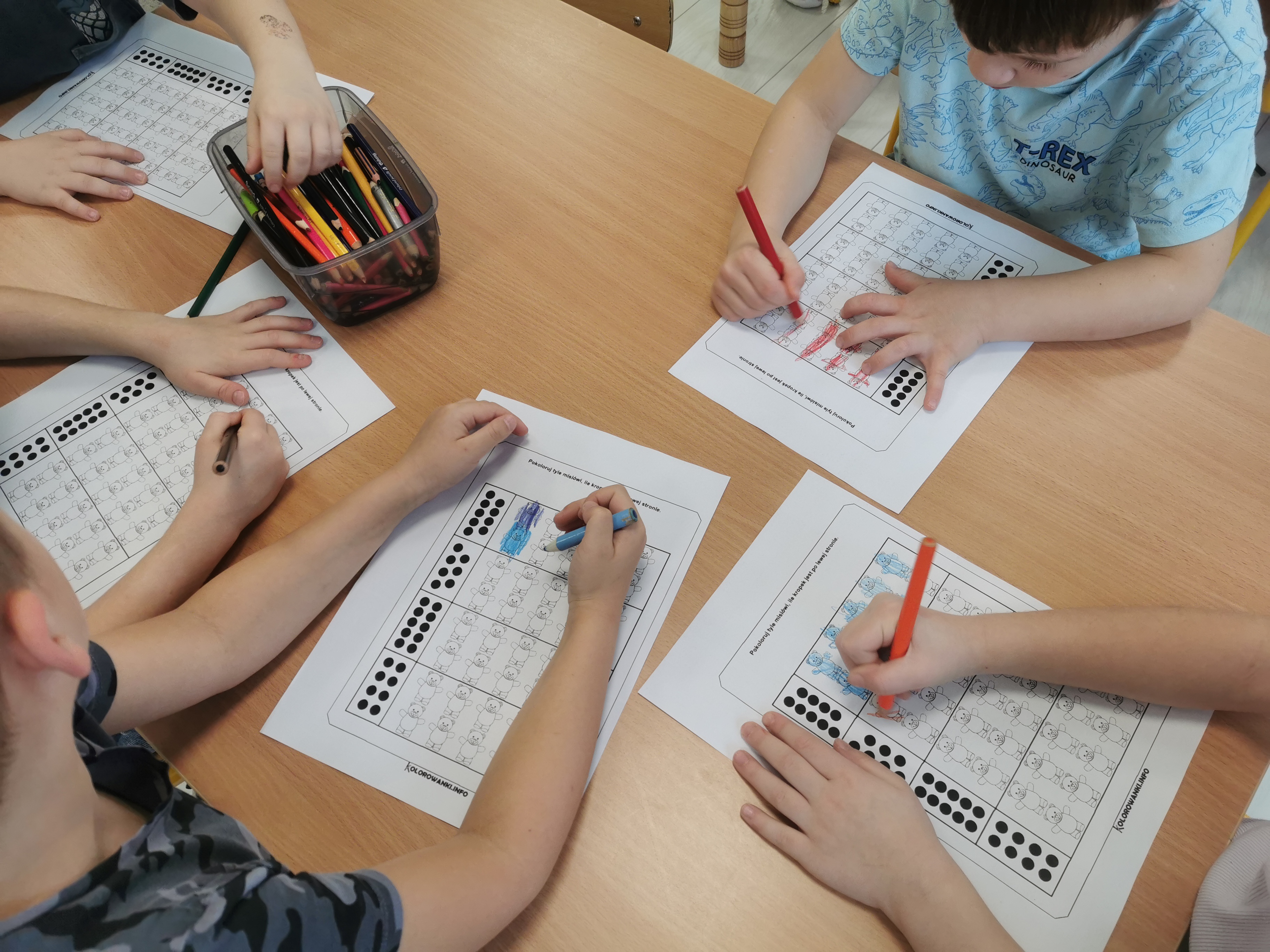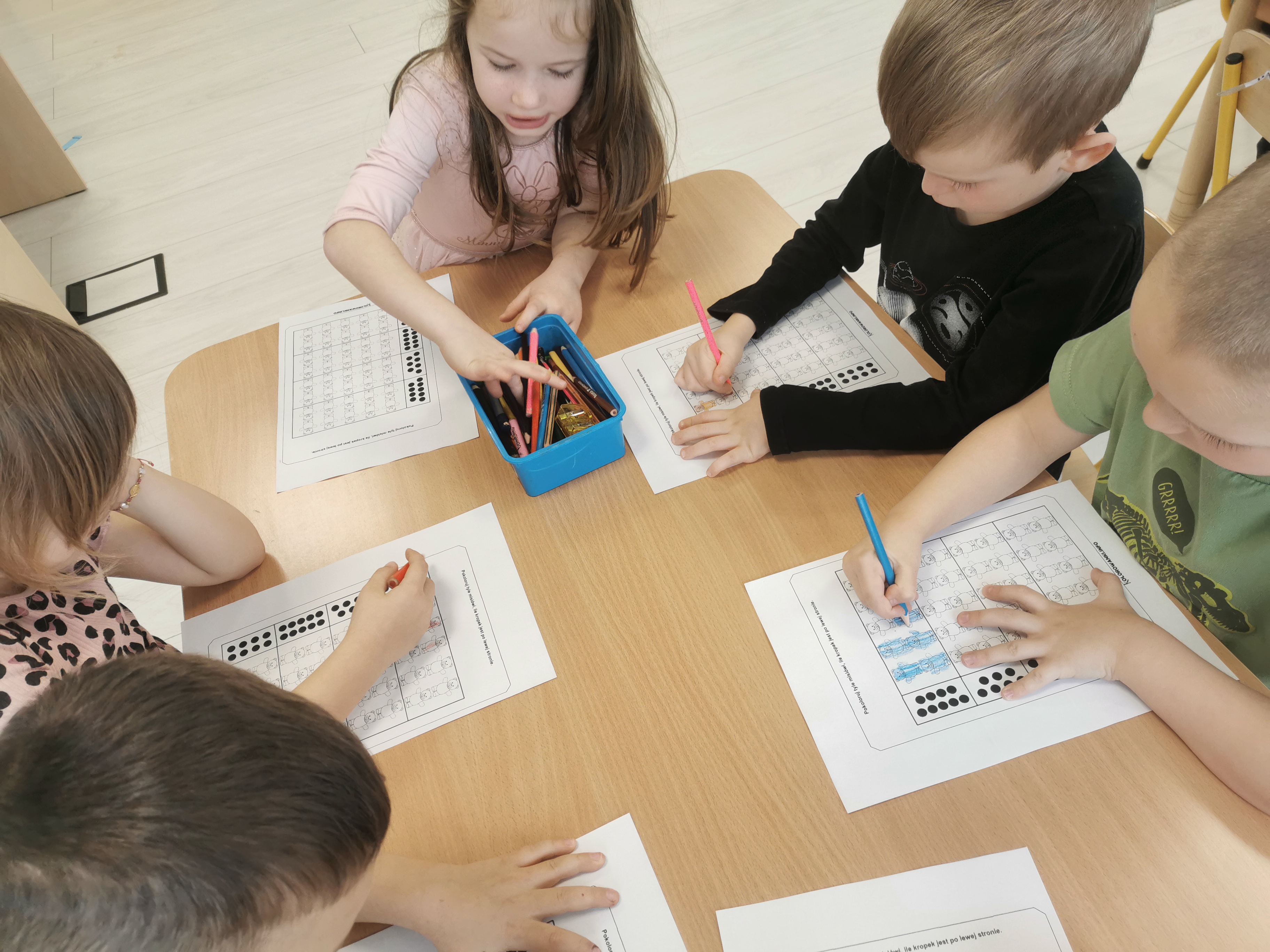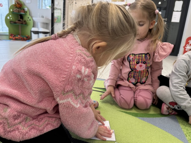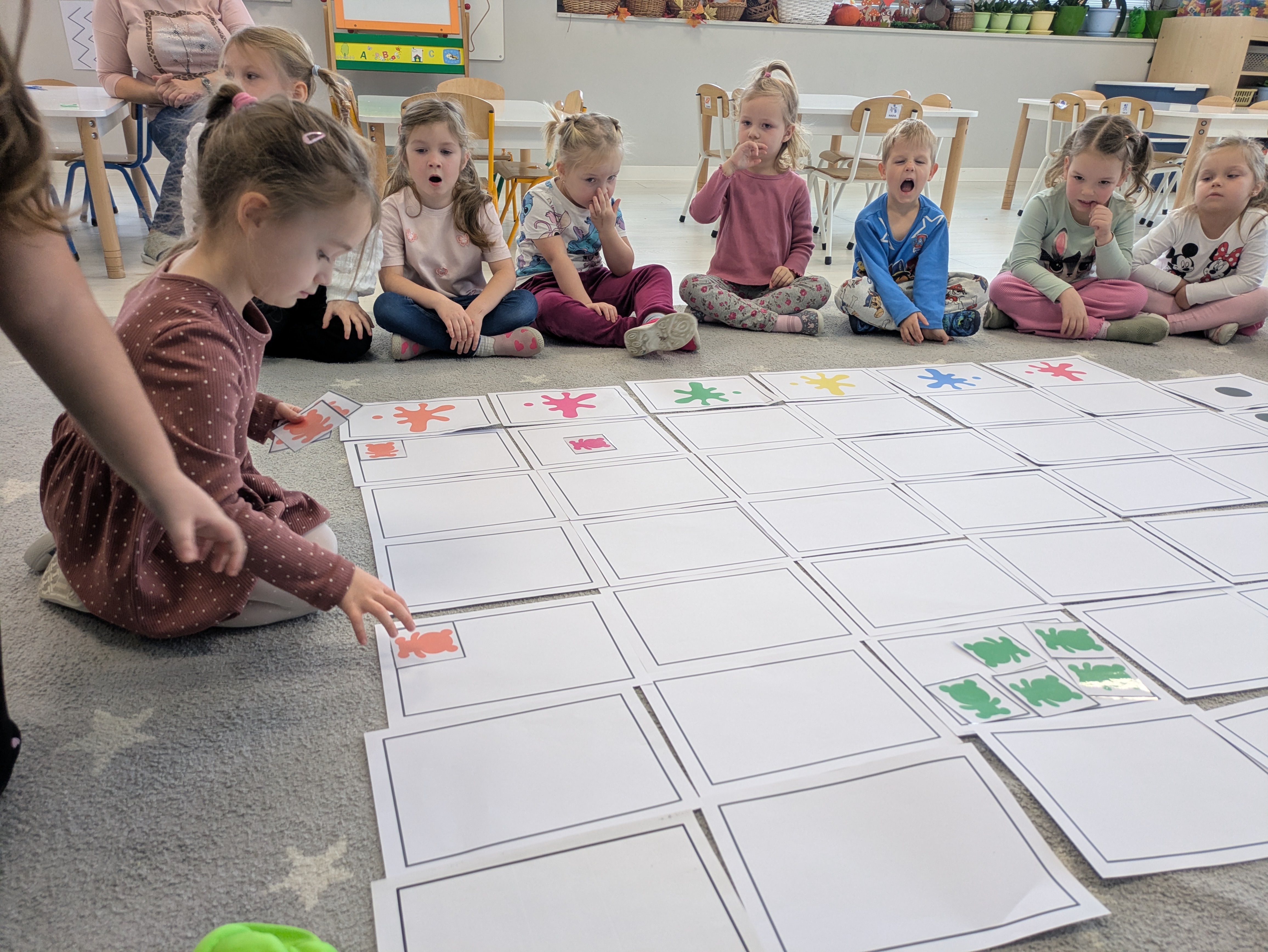 Wspólnie bawiliśmy się w gry dotykowe i ruchowe, które sprawiły dzieciom wiele radości i pozwoliły im rozwijać zmysły oraz koordynację. Na dywanie odbyło się również kodowanie z misiami, podczas którego dzieci uczyły się logicznego myślenia i współpracy, układając proste sekwencje i trasy.