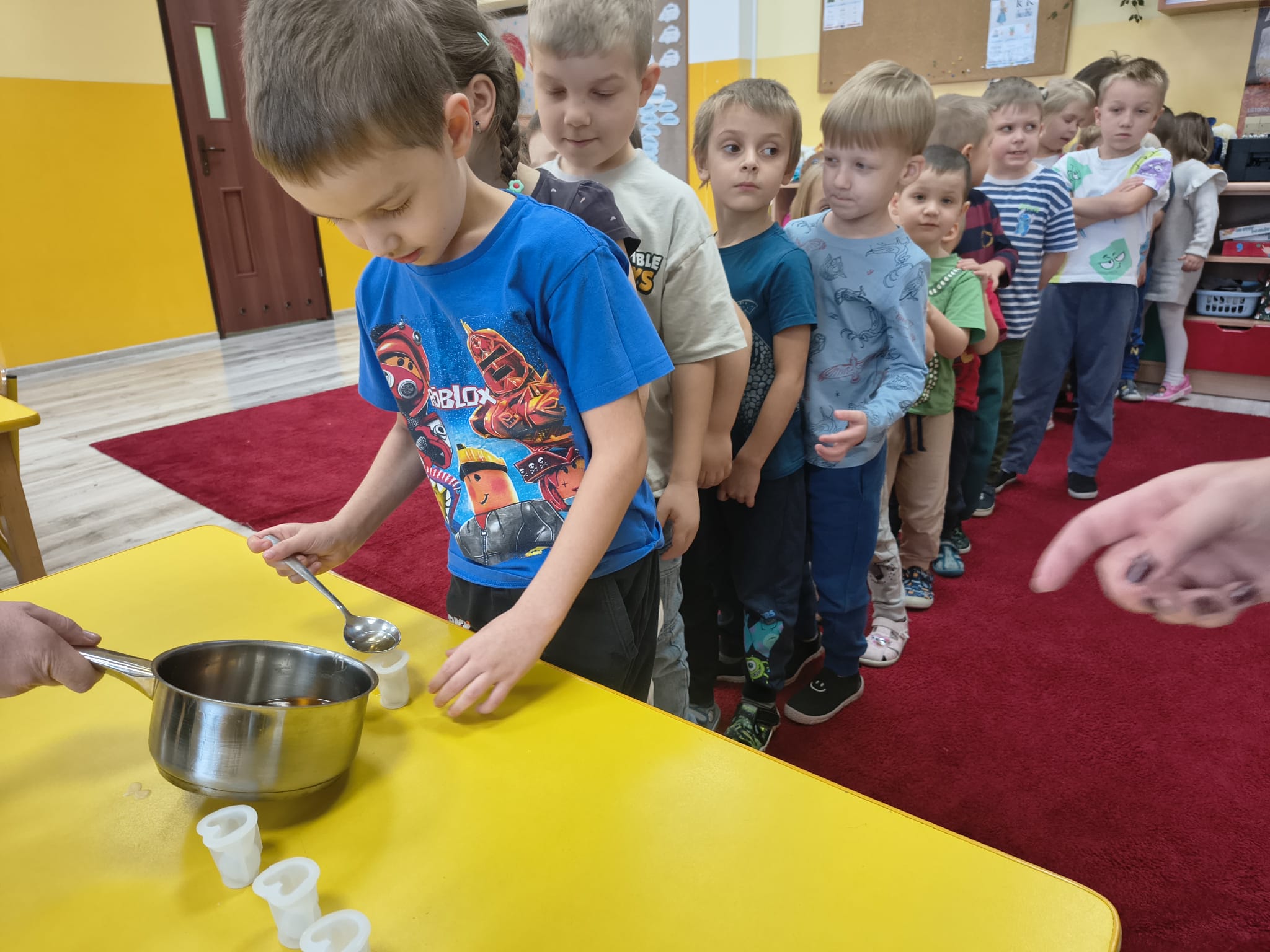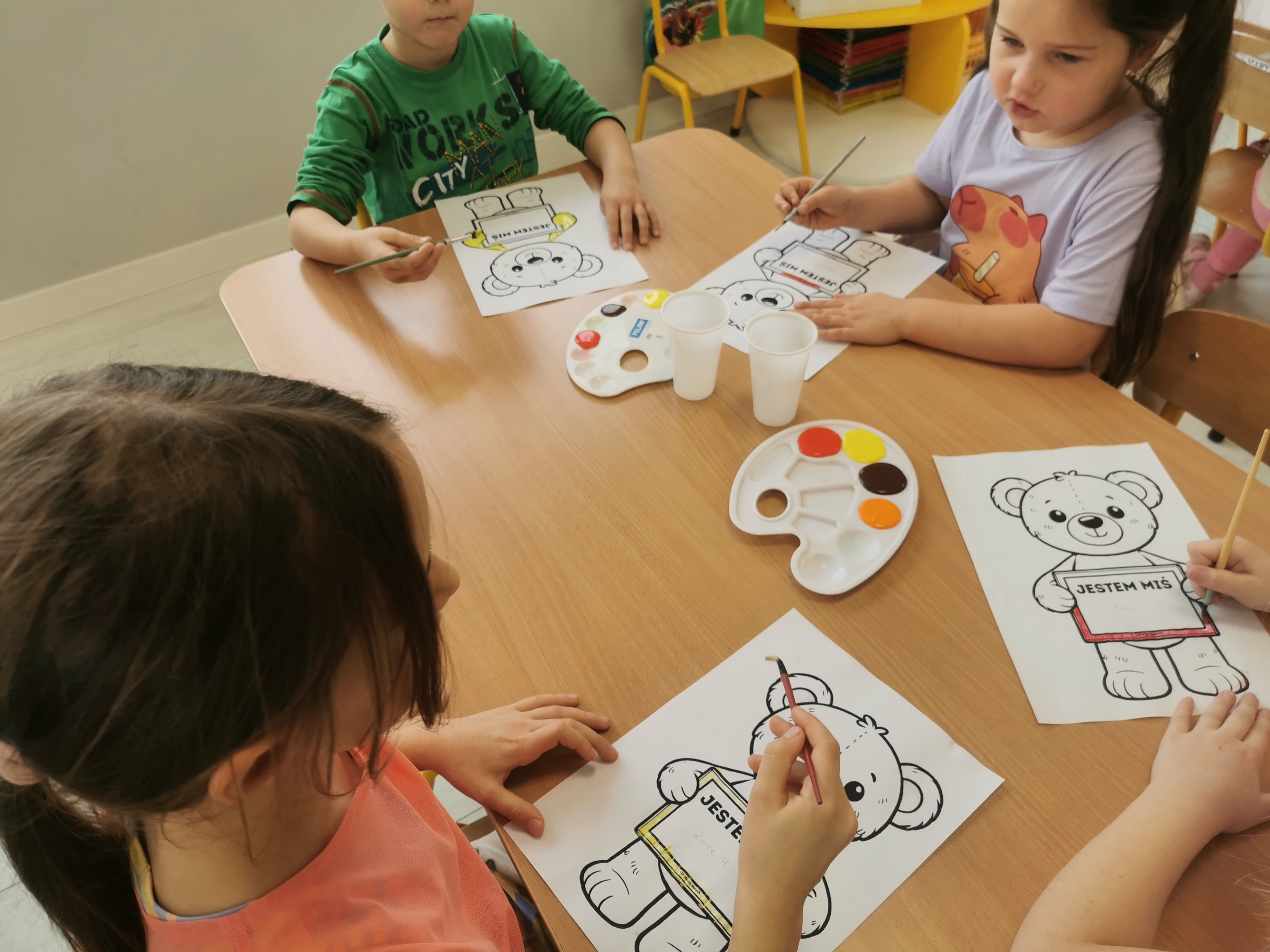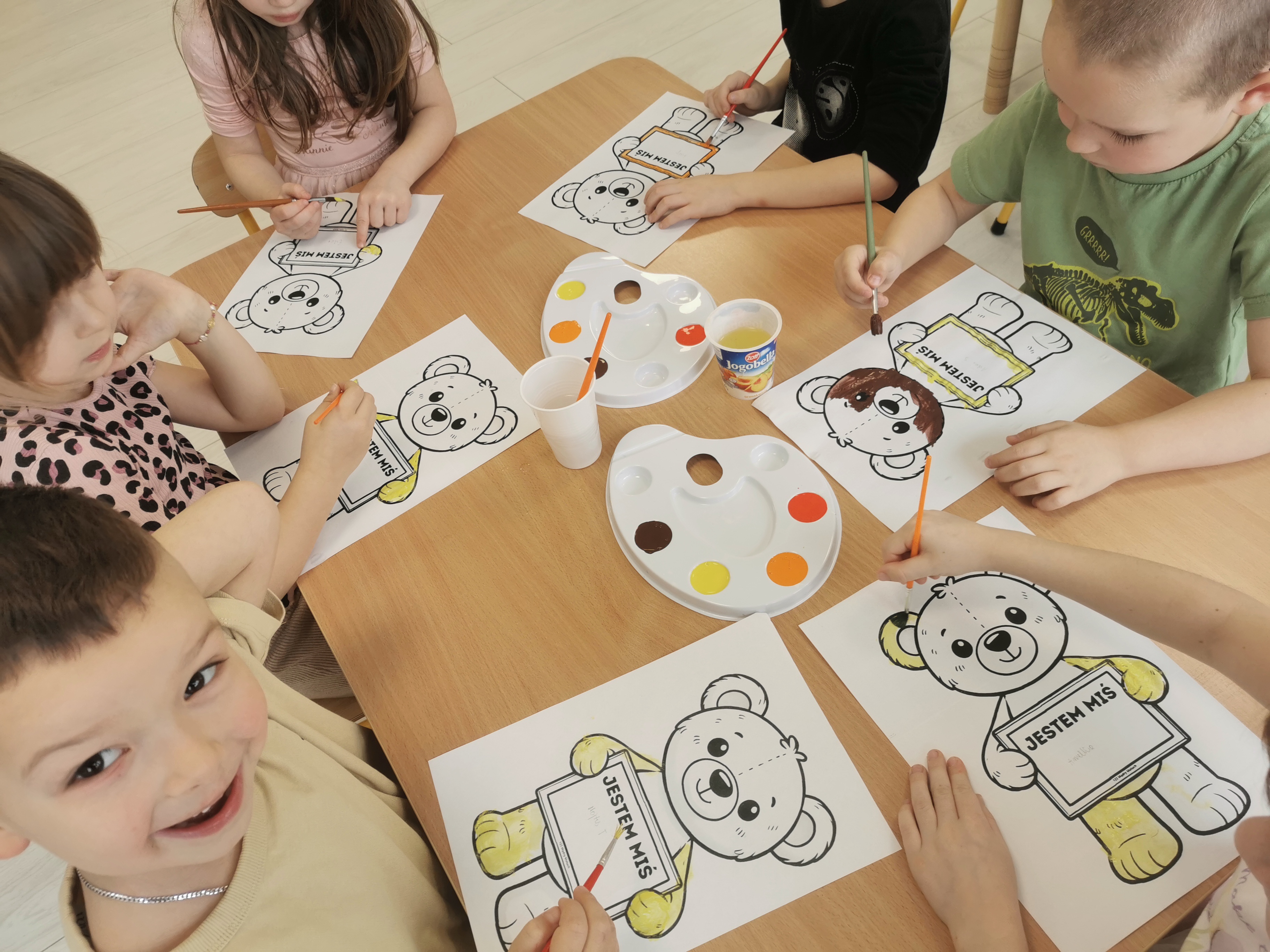 Nie zabrakło też twórczej części – przedszkolaki wykonały misiowe prace plastyczne, wykorzystując różnorodne materiały, kolory i faktury. Powstały piękne, wyjątkowe dzieła, które ozdobiły naszą salę.