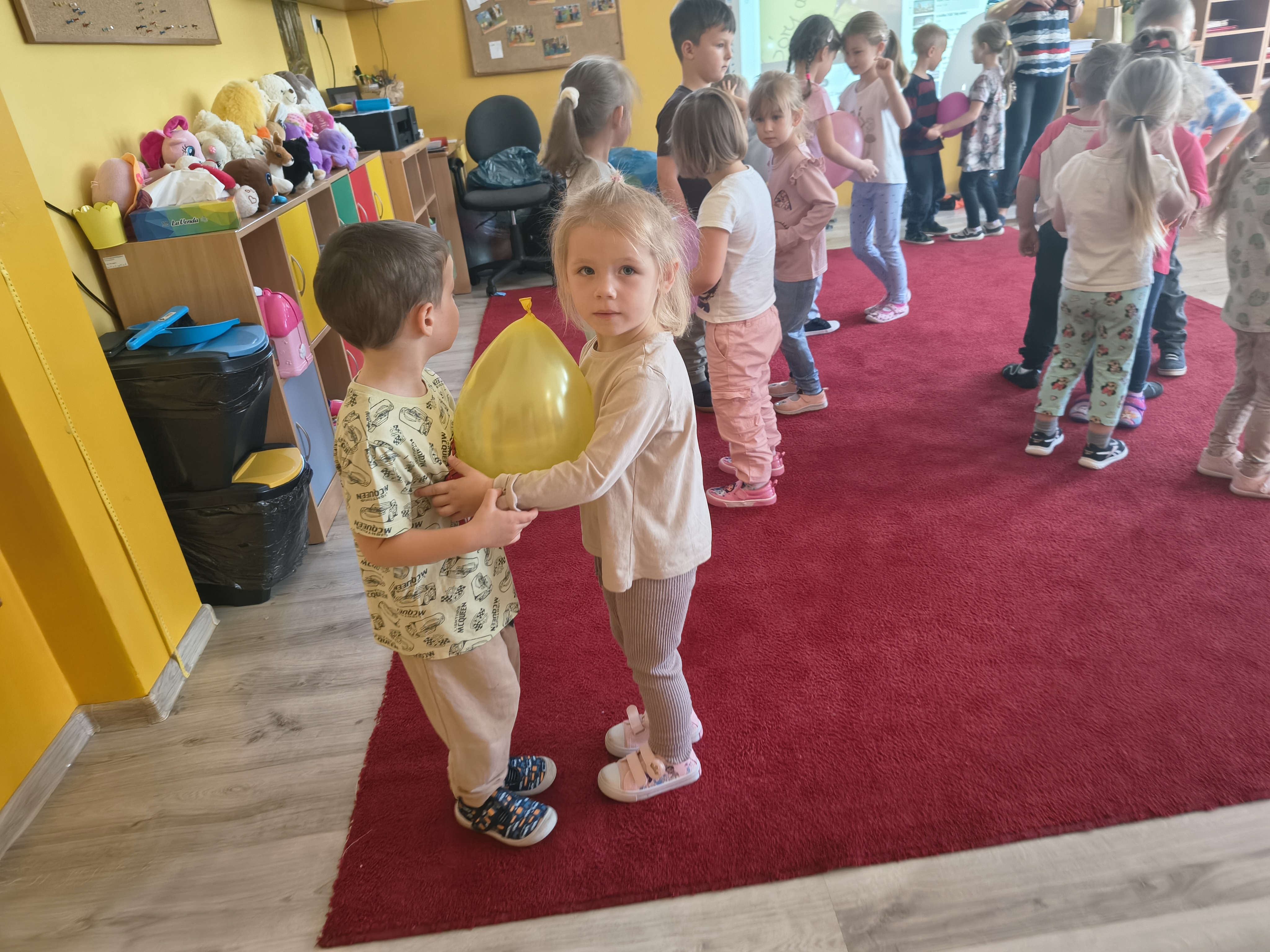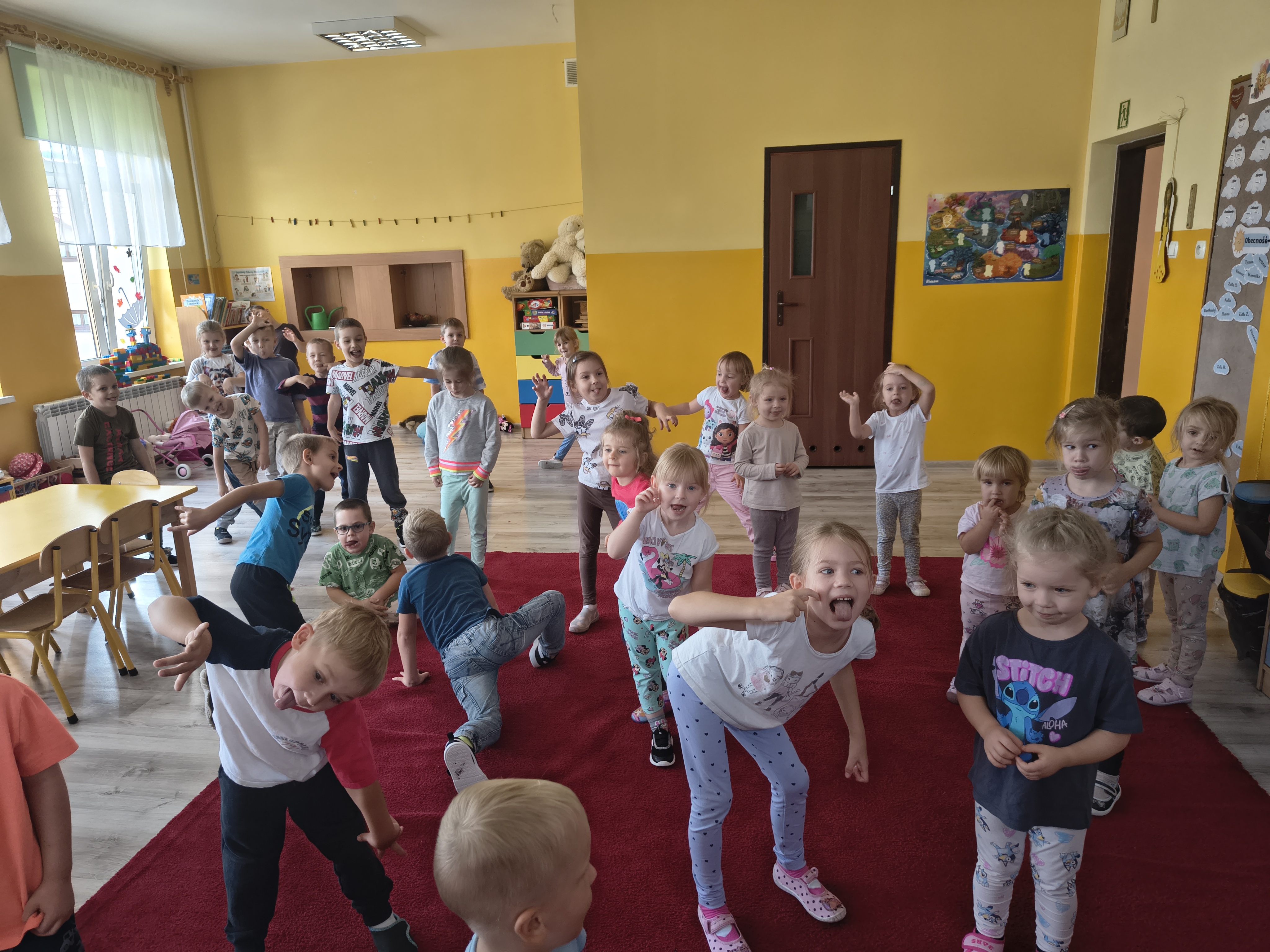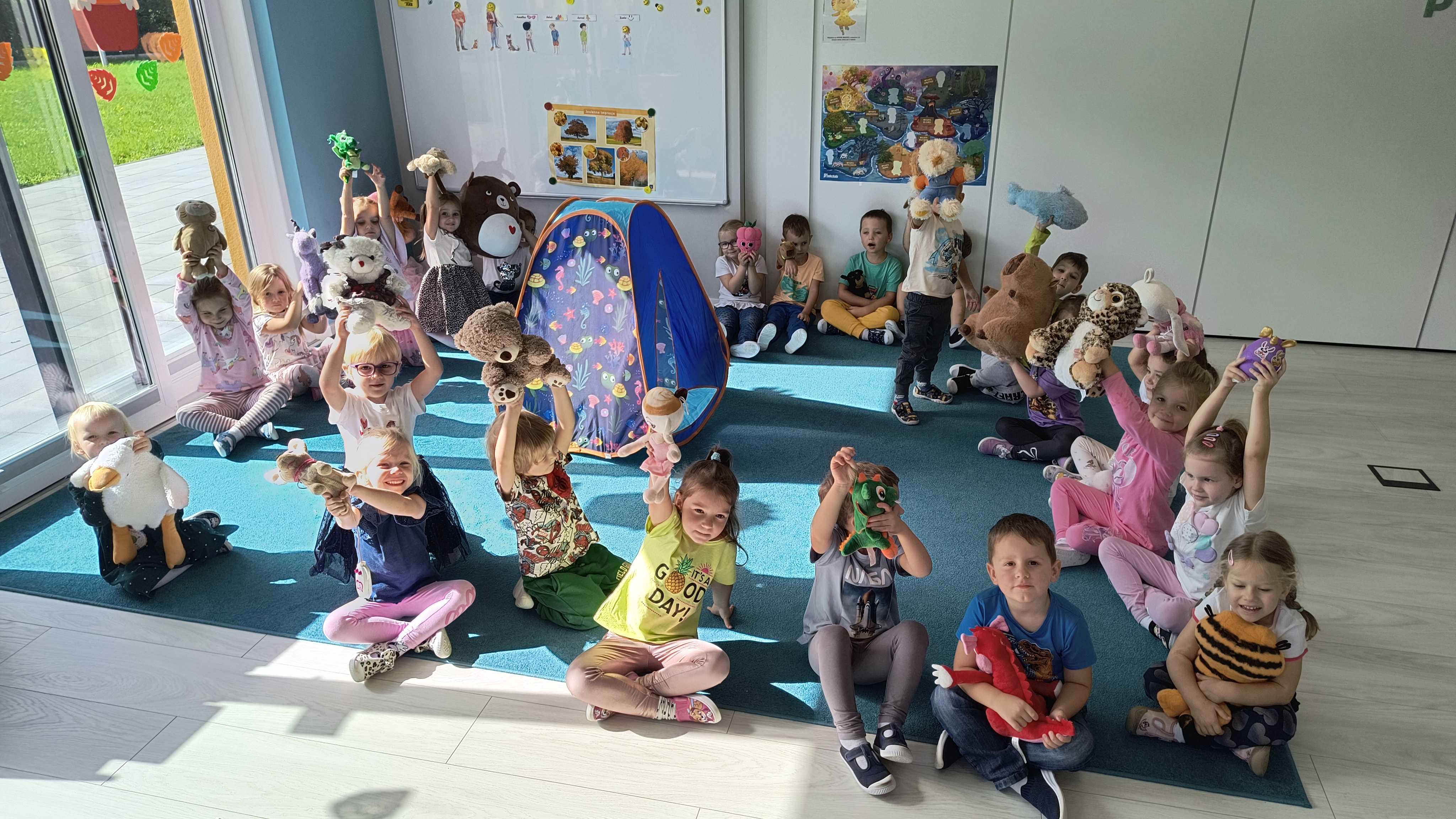 Z tej okazji dzieci z każdej grupy wzięły udział w radosnym świętowaniu, które rozpoczęło się od wspólnych zabaw ruchowych i tanecznych. W rytmach wesołej muzyki przedszkolaki tańczyły, skakały i bawiły się w grupach, a towarzyszyli im wyjątkowi goście – pluszowe przytulanki, które dzieci przyniosły z domów specjalnie na ten dzień.