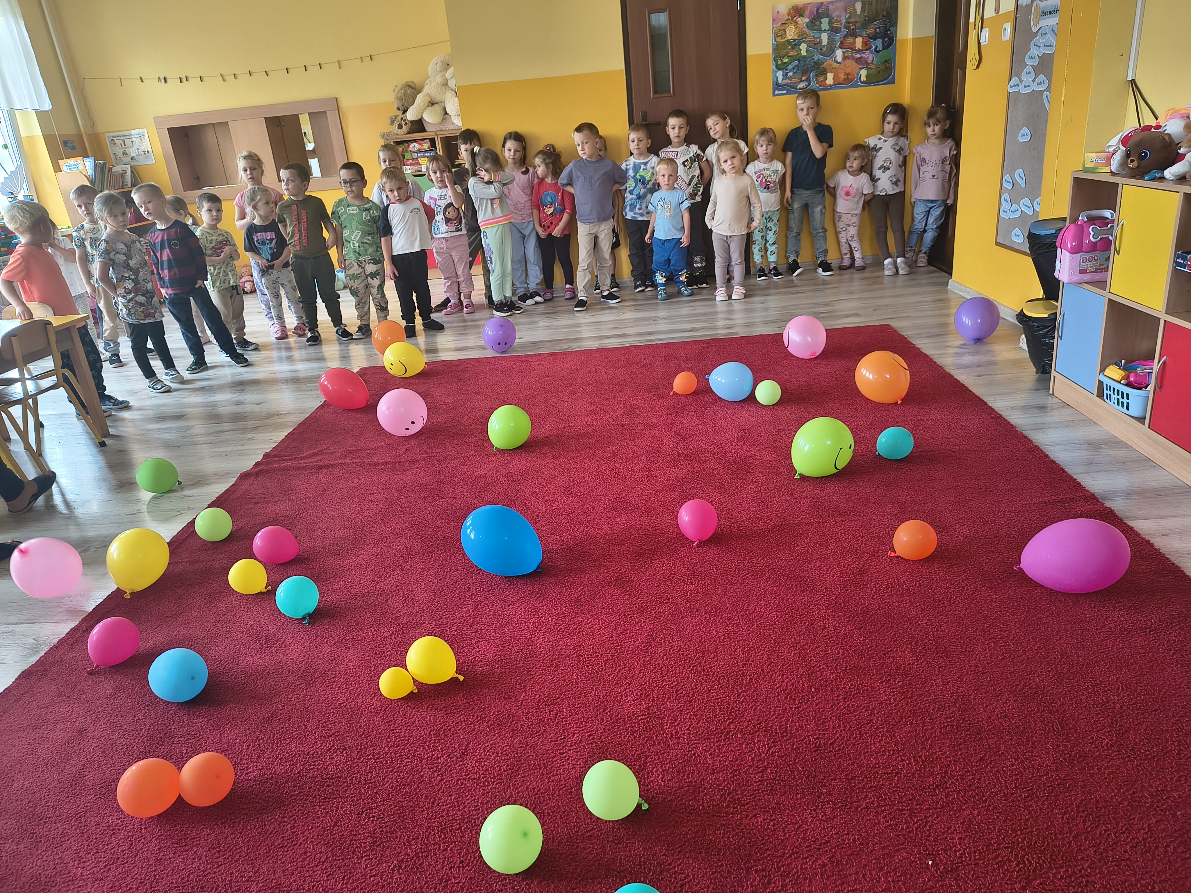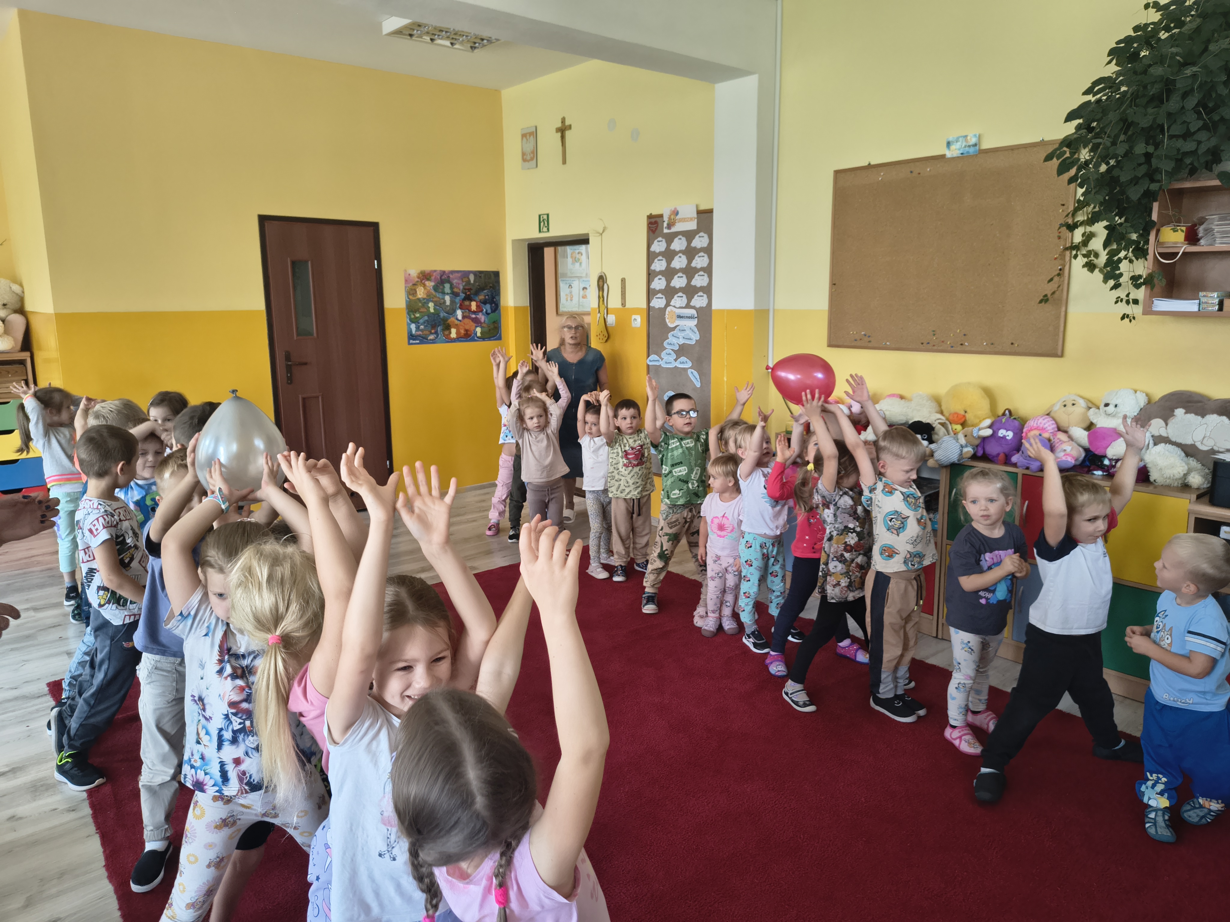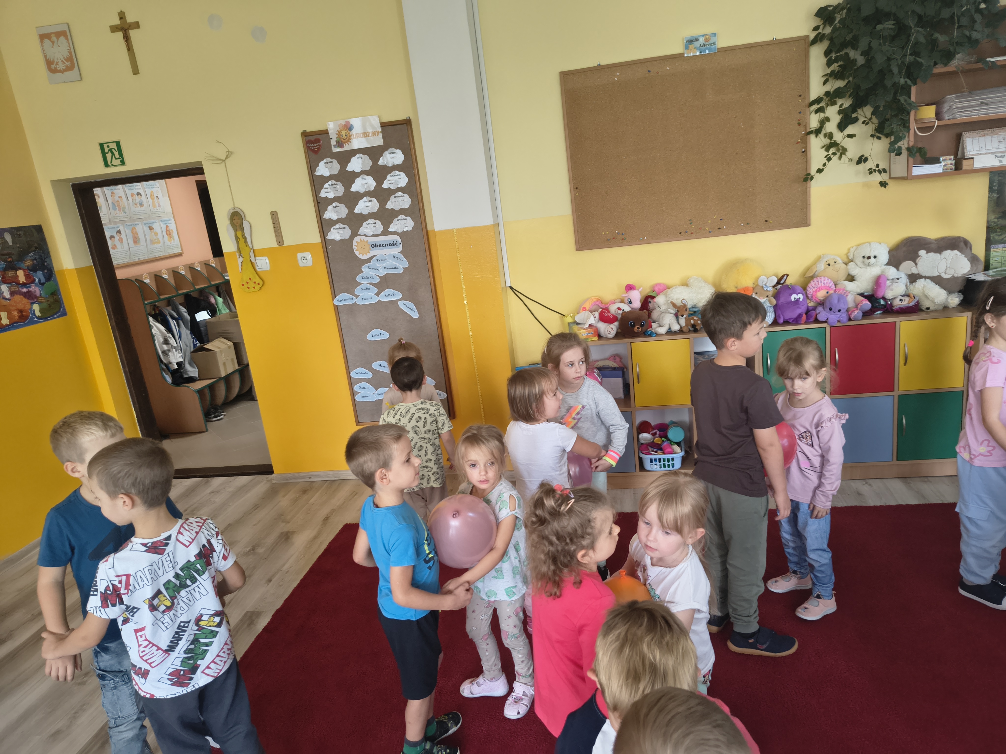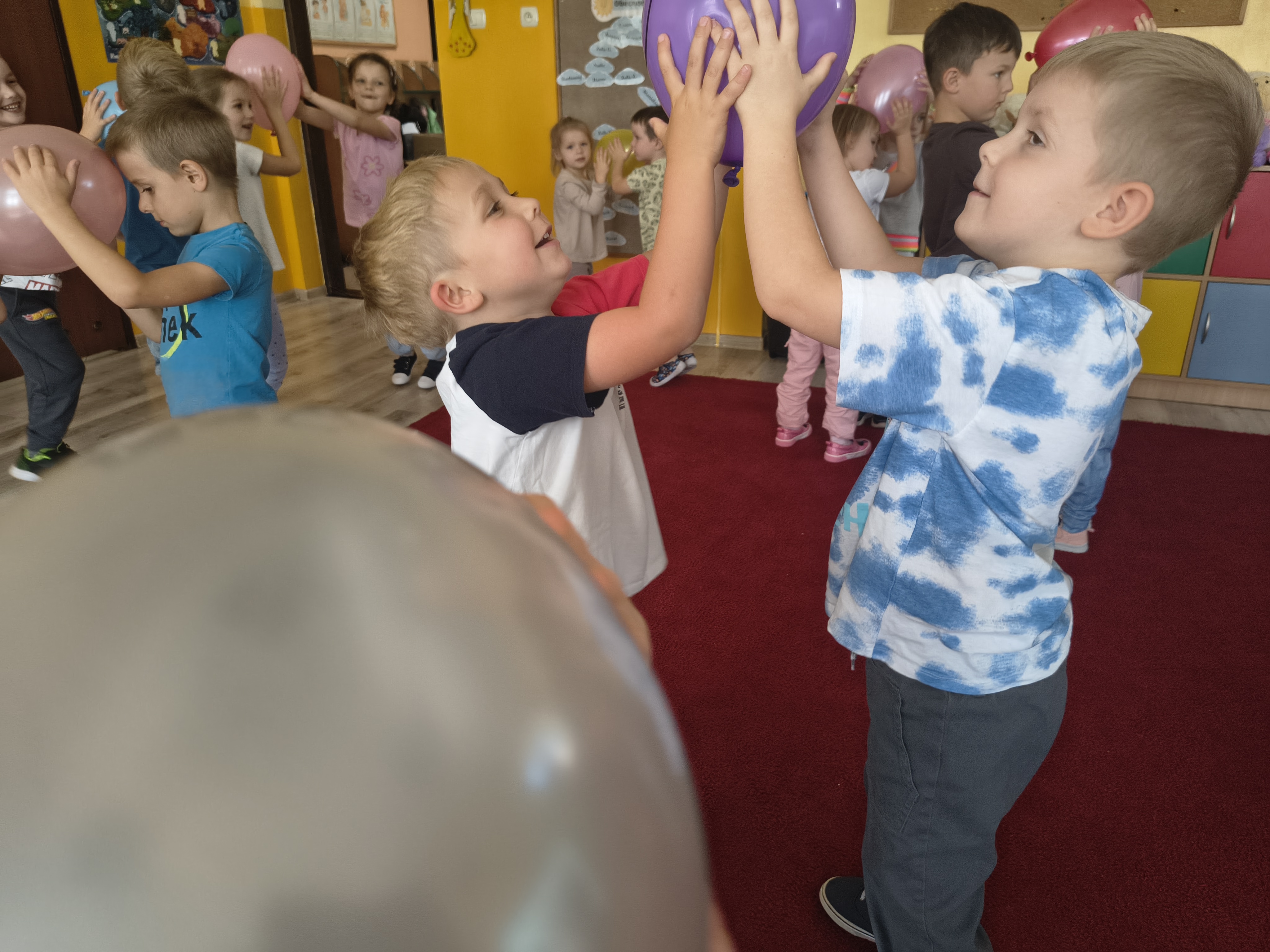 Z tej okazji dzieci z każdej grupy wzięły udział w radosnym świętowaniu, które rozpoczęło się od wspólnych zabaw ruchowych i tanecznych. W rytmach wesołej muzyki przedszkolaki tańczyły, skakały i bawiły się w grupach, a towarzyszyli im wyjątkowi goście – pluszowe przytulanki, które dzieci przyniosły z domów specjalnie na ten dzień.