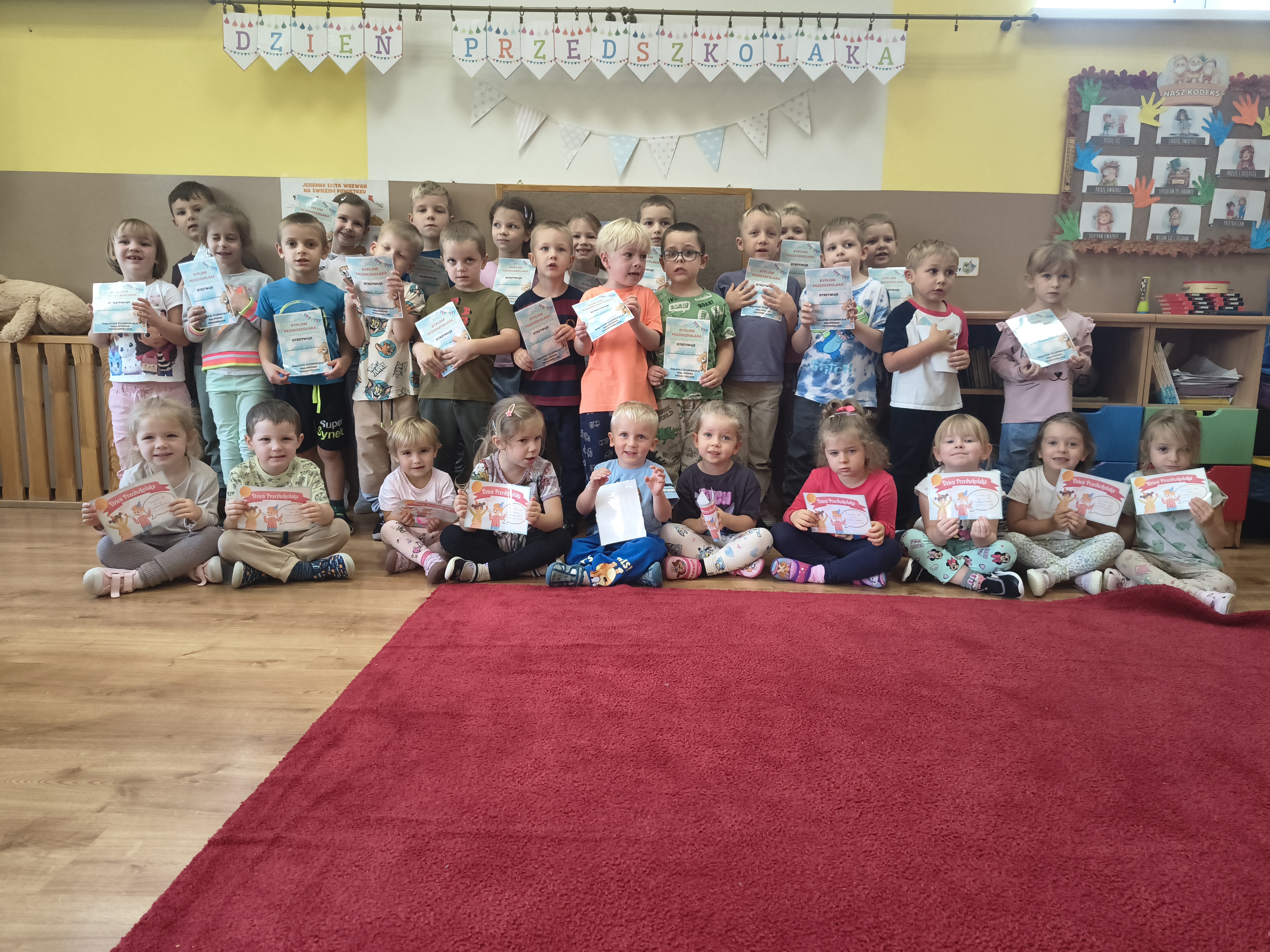 Na zakończenie każda grupa otrzymała pamiątkowe dyplomy Dzielnego Przedszkolaka, które z dumą dzieci zabrały do domu. To był dzień pełen radości, ruchu, śmiechu i pozytywnej energii – dokładnie taki, jaki powinien być Dzień Przedszkolaka!