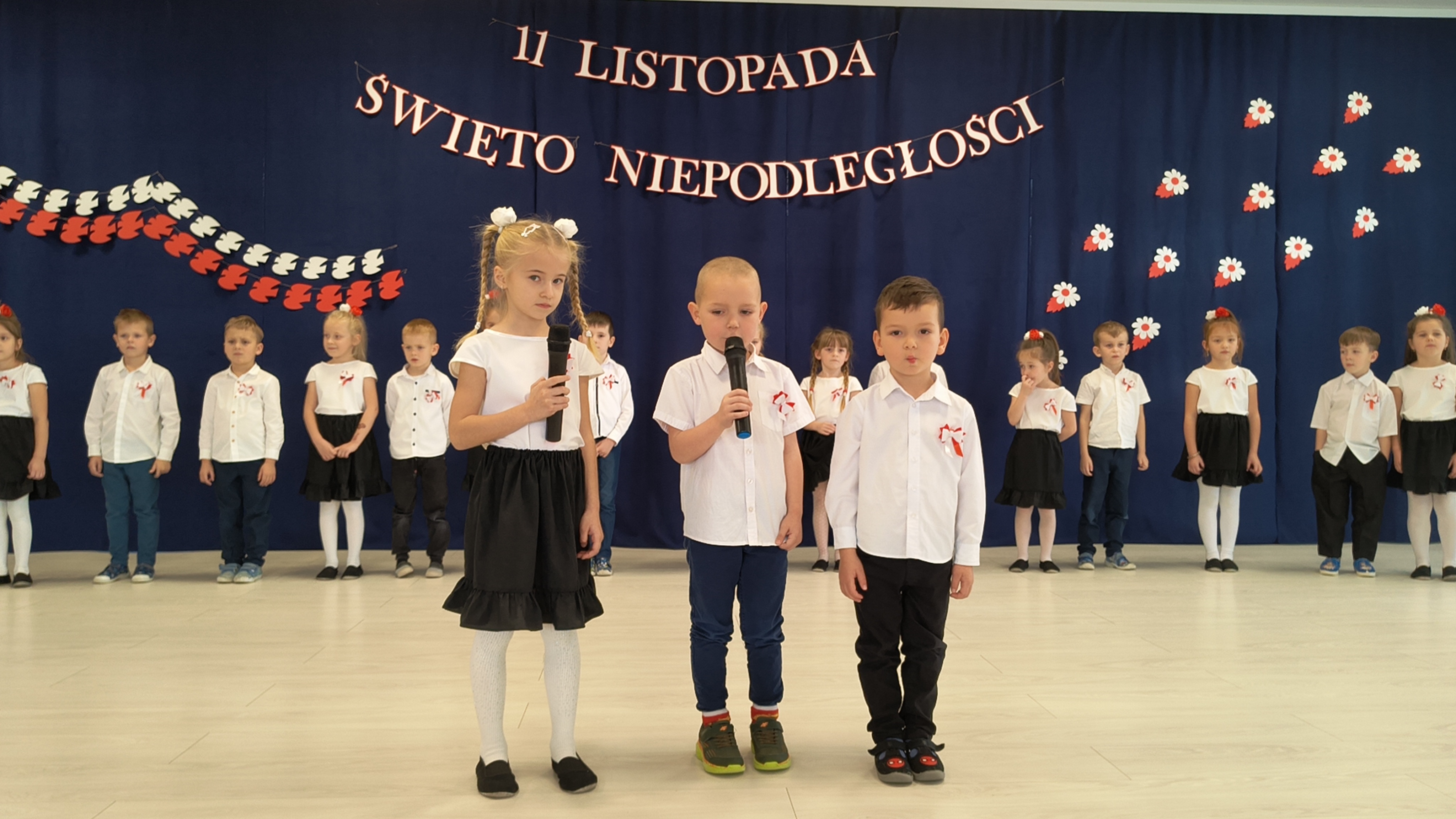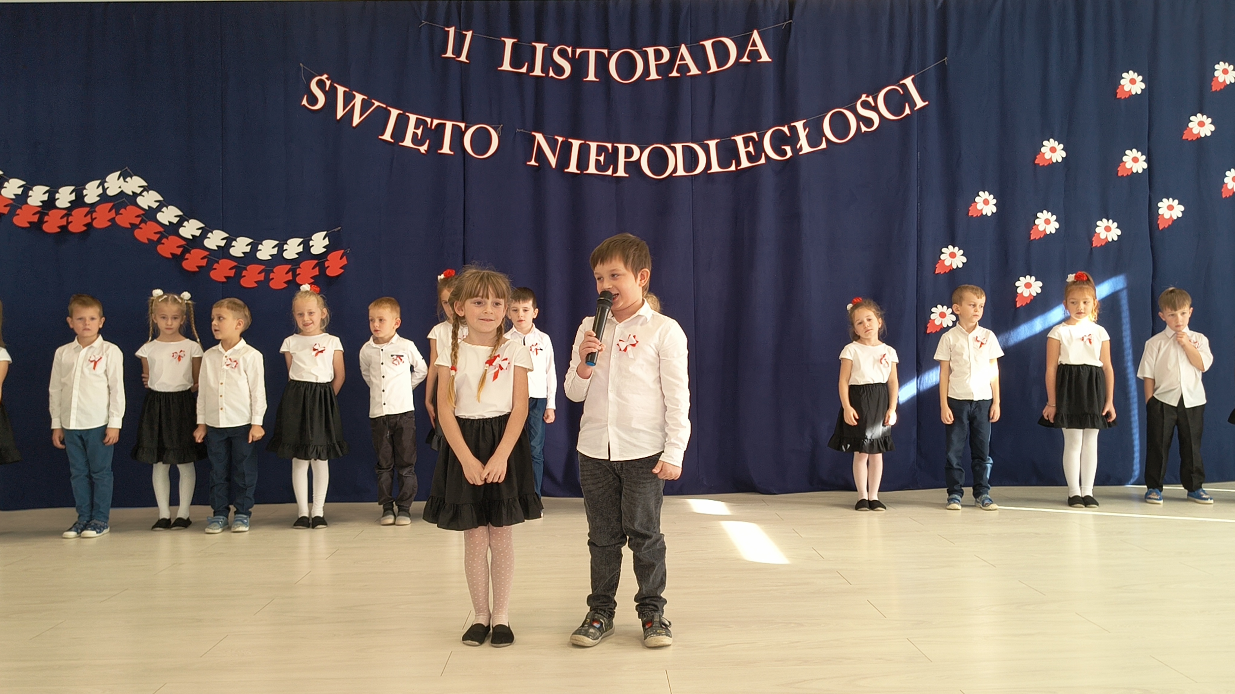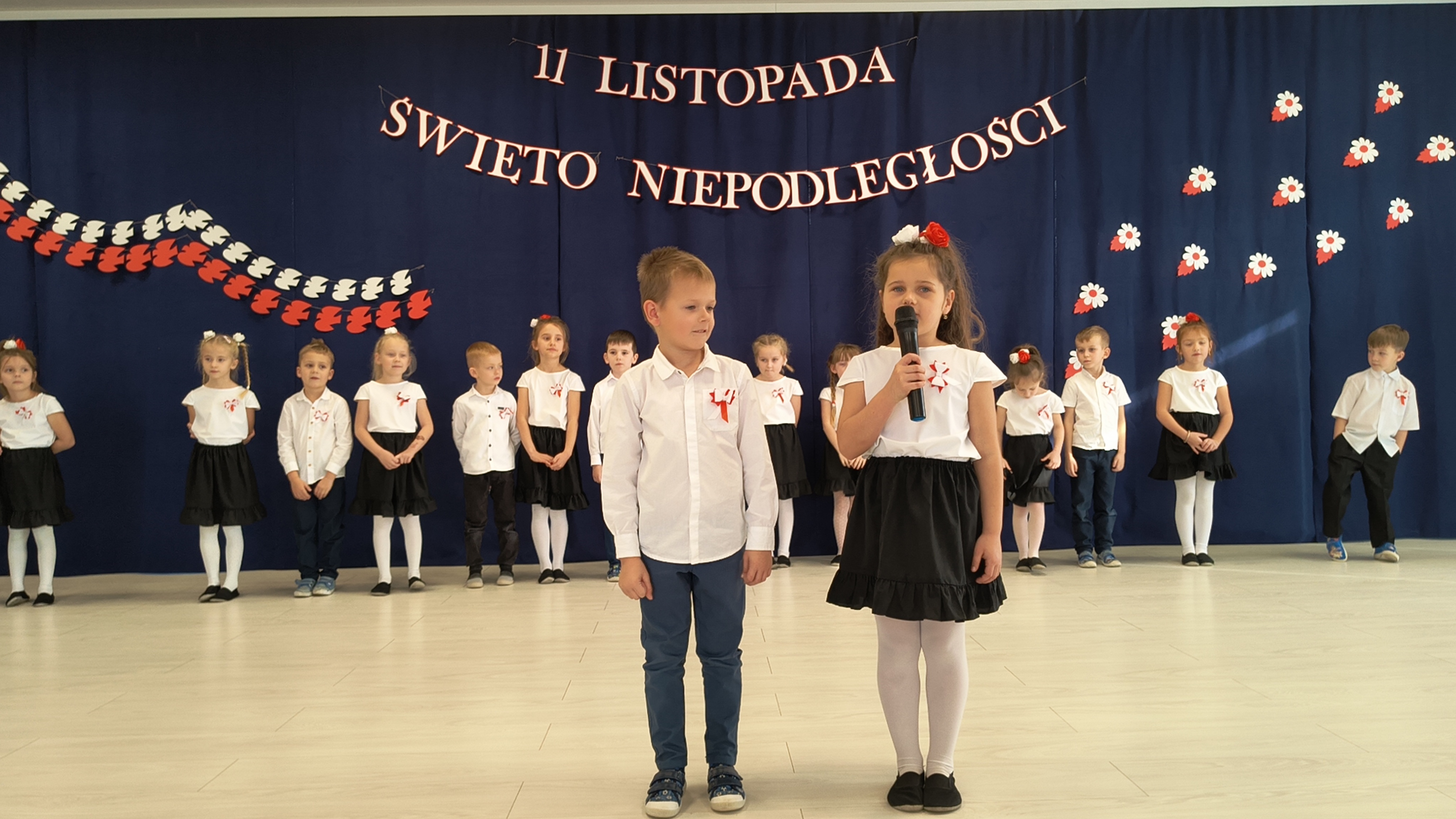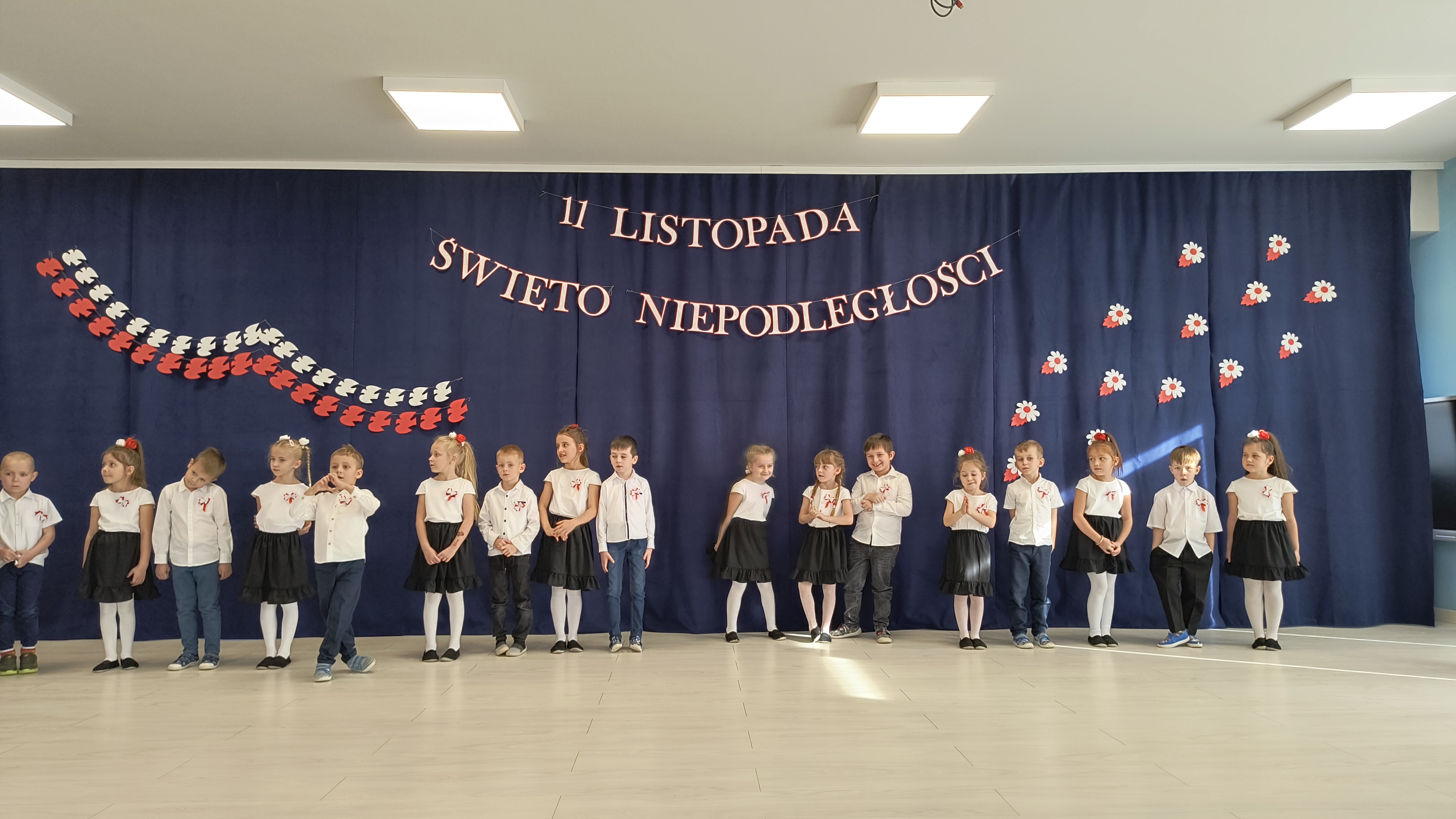 12 listopada nasze przedszkole uczciło Narodowe Święto Niepodległości wyjątkowym występem przygotowanym przez grupę 6-latków. Ubrane w odświętne stroje dzieci rozpoczęły uroczystość uroczystym marszem generalskim. Następnie z ogromnym zaangażowaniem recytowały wiersze o ojczyźnie i śpiewały pieśni patriotyczne. Ich występ wprowadził wszystkich w podniosły nastrój i przypomniał, jak ważne są miłość do ojczyzny, wolność i pamięć o historii naszego kraju.