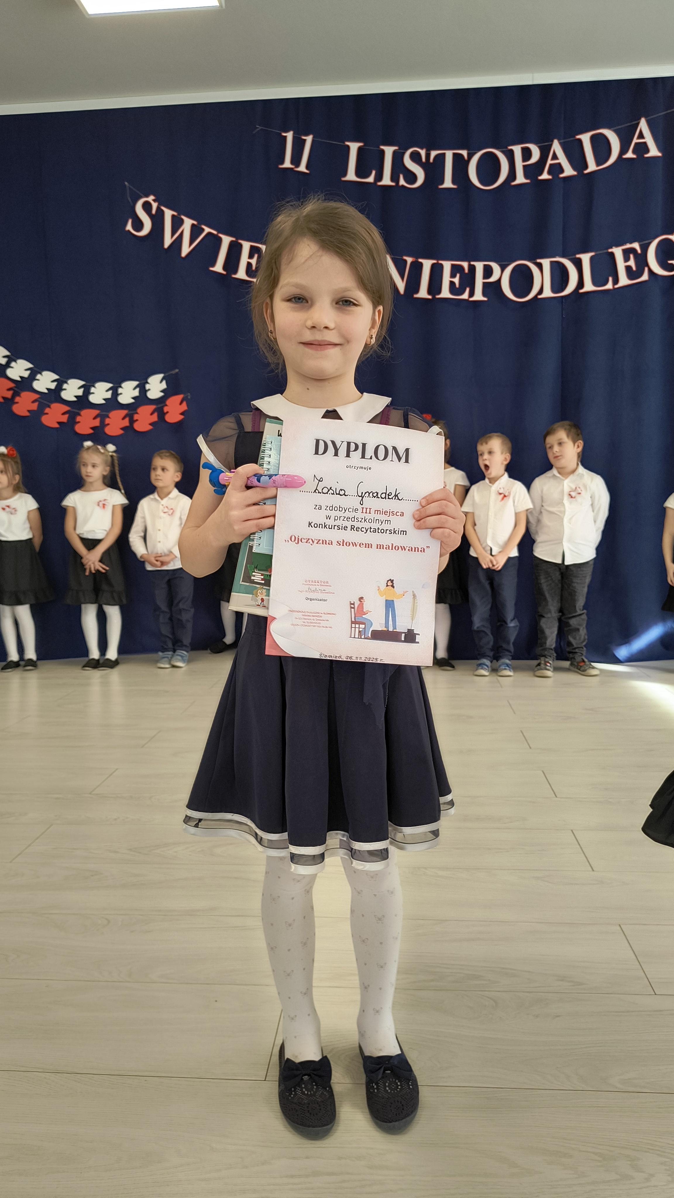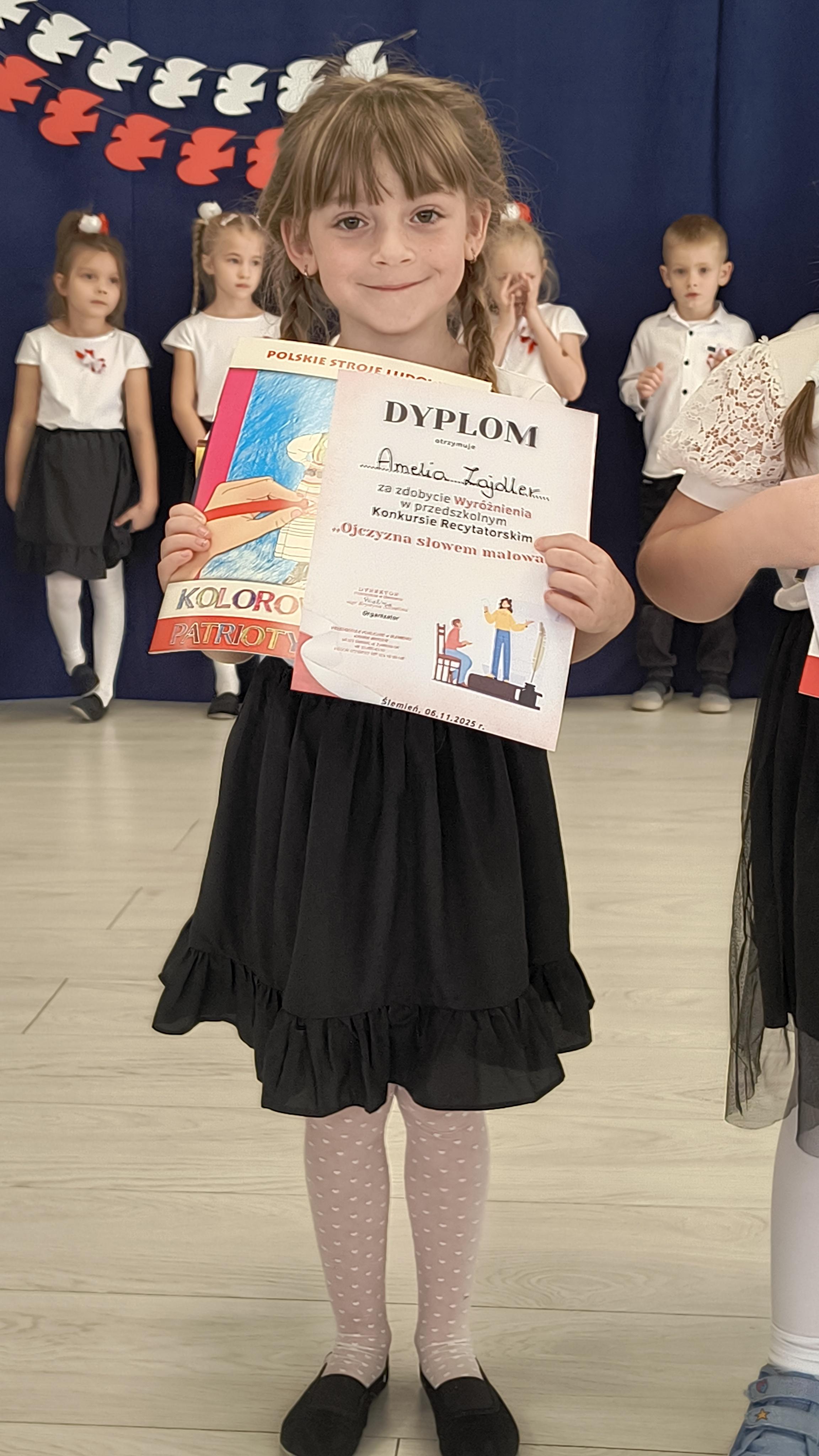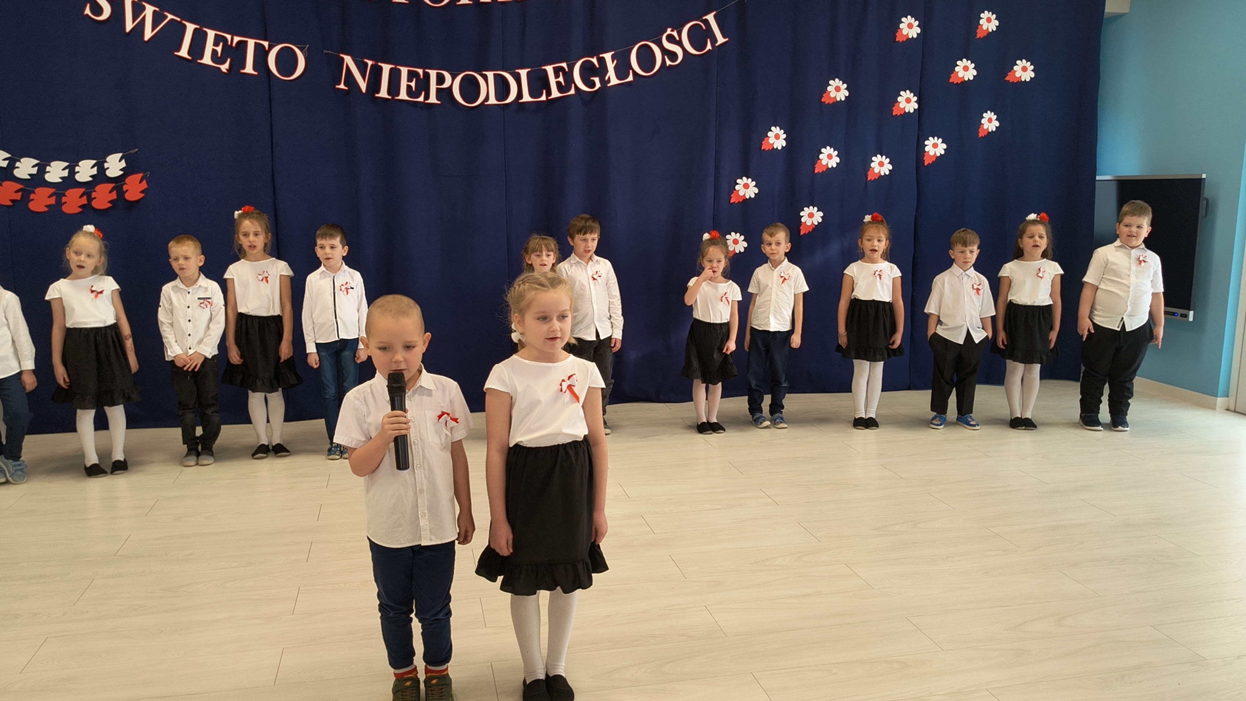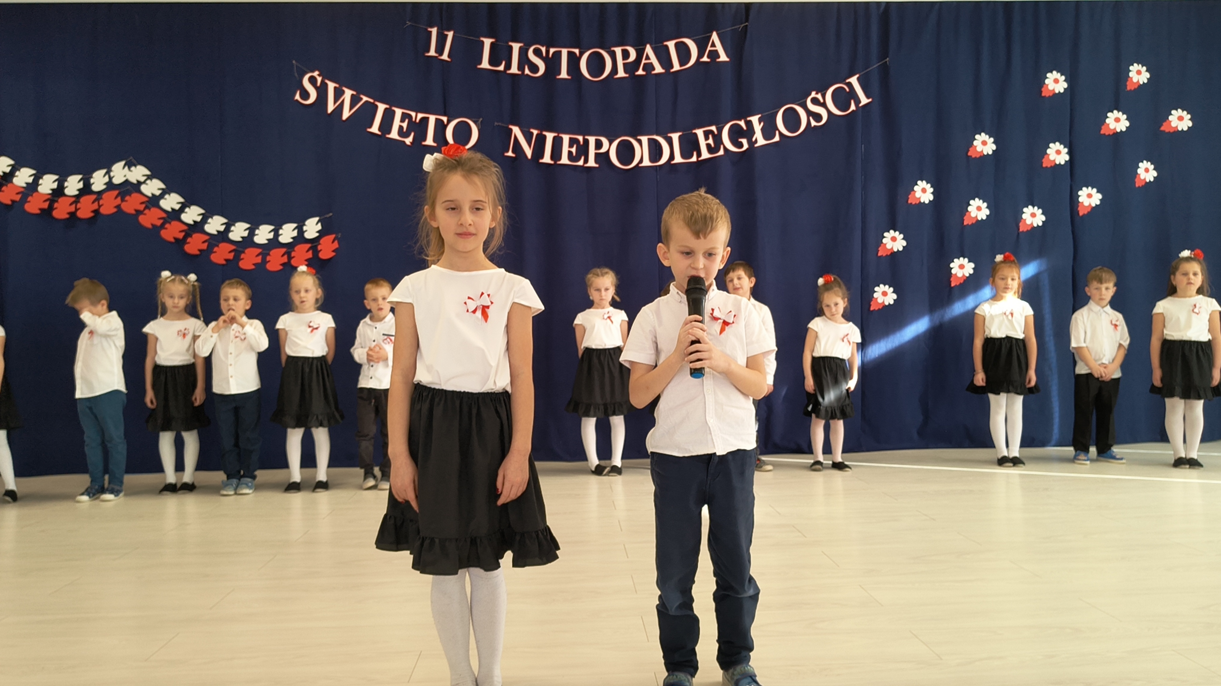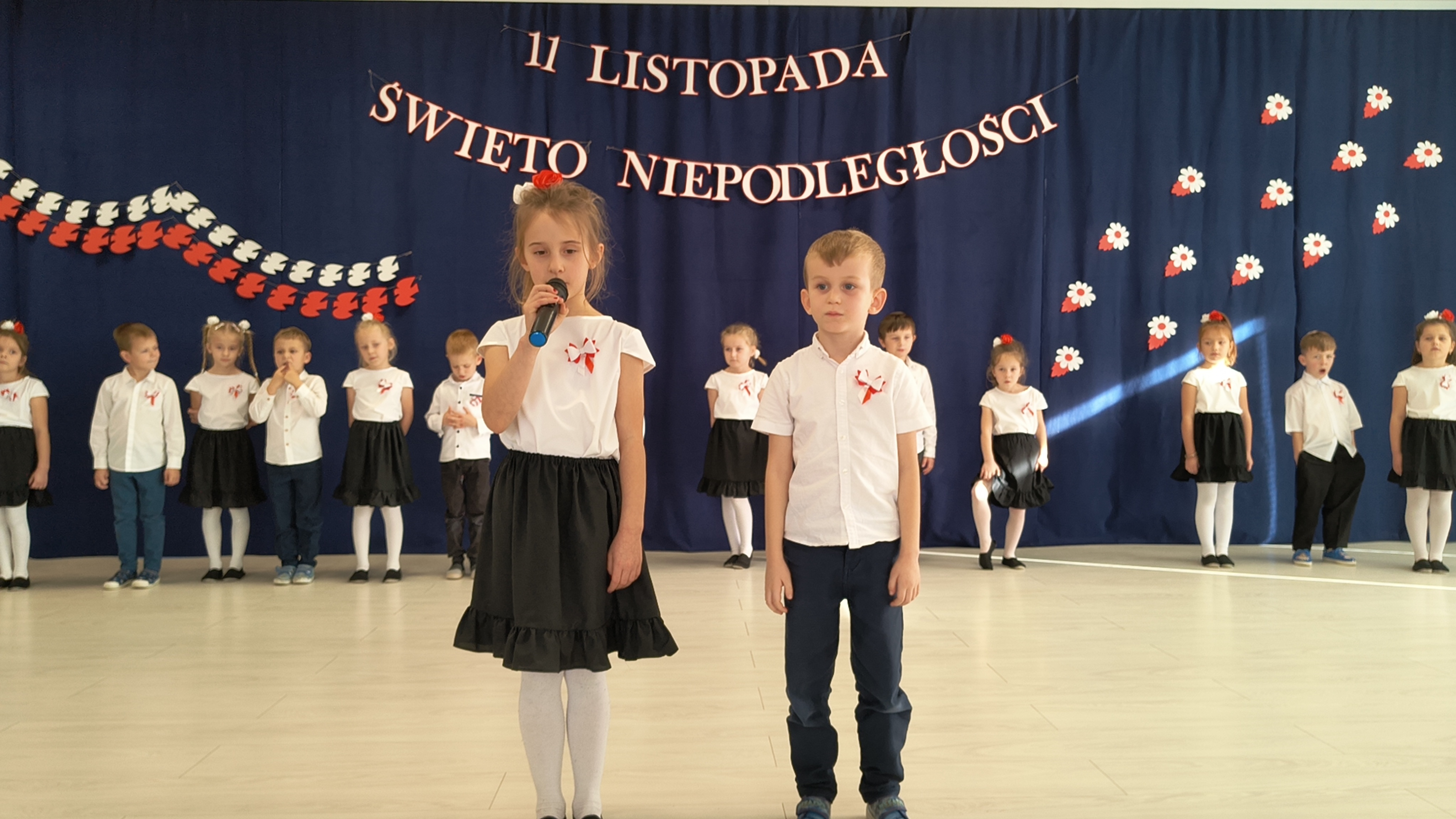 12 listopada nasze przedszkole uczciło Narodowe Święto Niepodległości wyjątkowym występem przygotowanym przez grupę 6-latków. Ubrane w odświętne stroje dzieci rozpoczęły uroczystość uroczystym marszem generalskim. Następnie z ogromnym zaangażowaniem recytowały wiersze o ojczyźnie i śpiewały pieśni patriotyczne. Ich występ wprowadził wszystkich w podniosły nastrój i przypomniał, jak ważne są miłość do ojczyzny, wolność i pamięć o historii naszego kraju.
