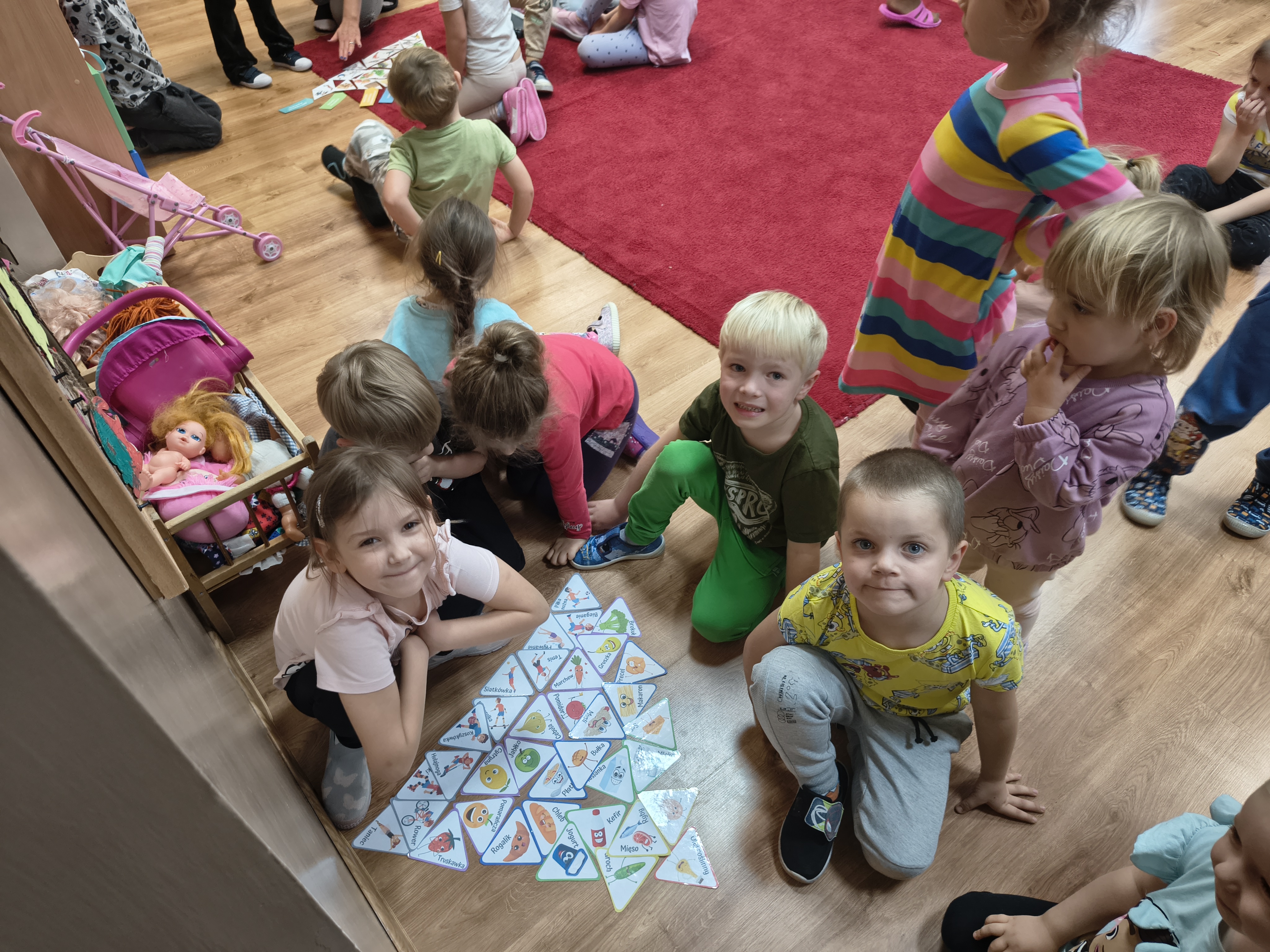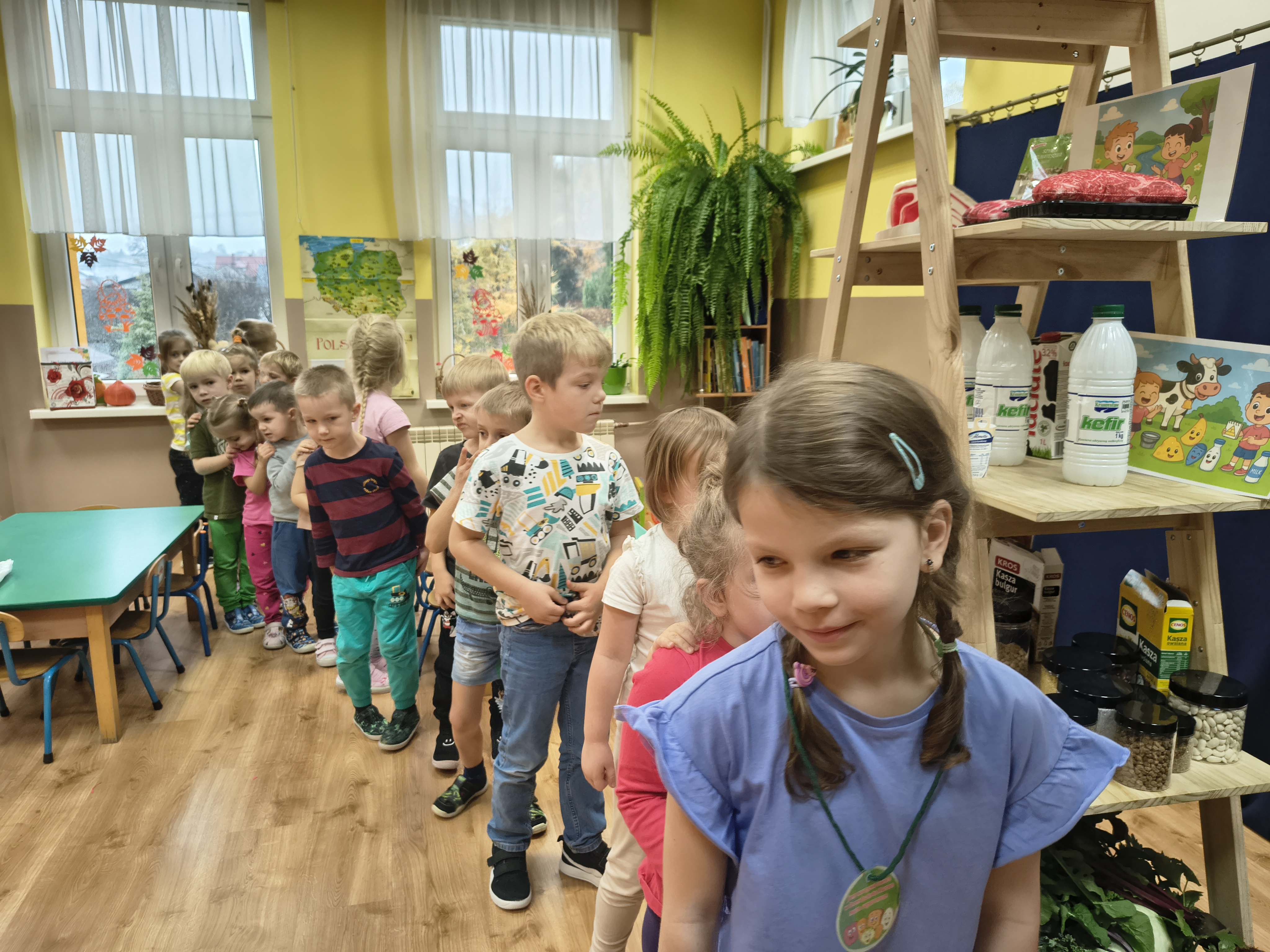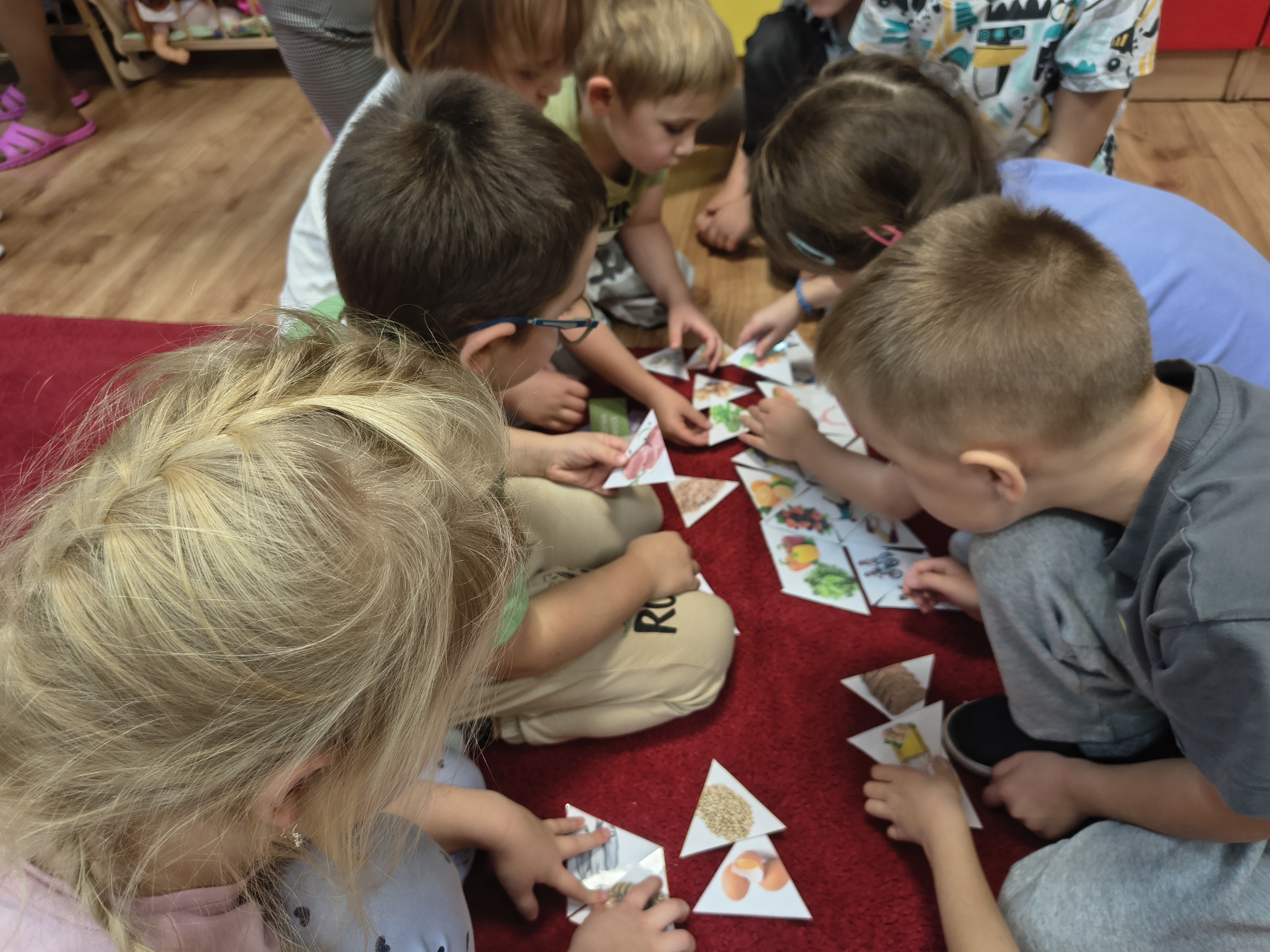 W poniedziałek tj 03.11.2025 r. w naszym przedszkolu odbyły się zajęcia dotyczące zdrowego żywienia. Pani Klaudia – mama jednego z naszych przedszkolaków – przyniosła do sali dużą piramidę żywieniową, którą dzieci mogły wspólnie uzupełniać odpowiednimi produktami. Zanim jednak rozpoczęliśmy pracę, Pani Klaudia przeczytała krótką bajkę edukacyjną, dzięki której dzieci łatwiej zrozumiały, jakie jedzenie jest dla nich zdrowe, a czego warto unikać. Następnie dzieci, pracując w grupach, układały piramidę z przygotowanych puzzli. Zajęcia przyniosły wiele uśmiechu, nauki i wspólnej zabawy. Na zakończenie każdy przedszkolak otrzymał pamiątkowy medal.