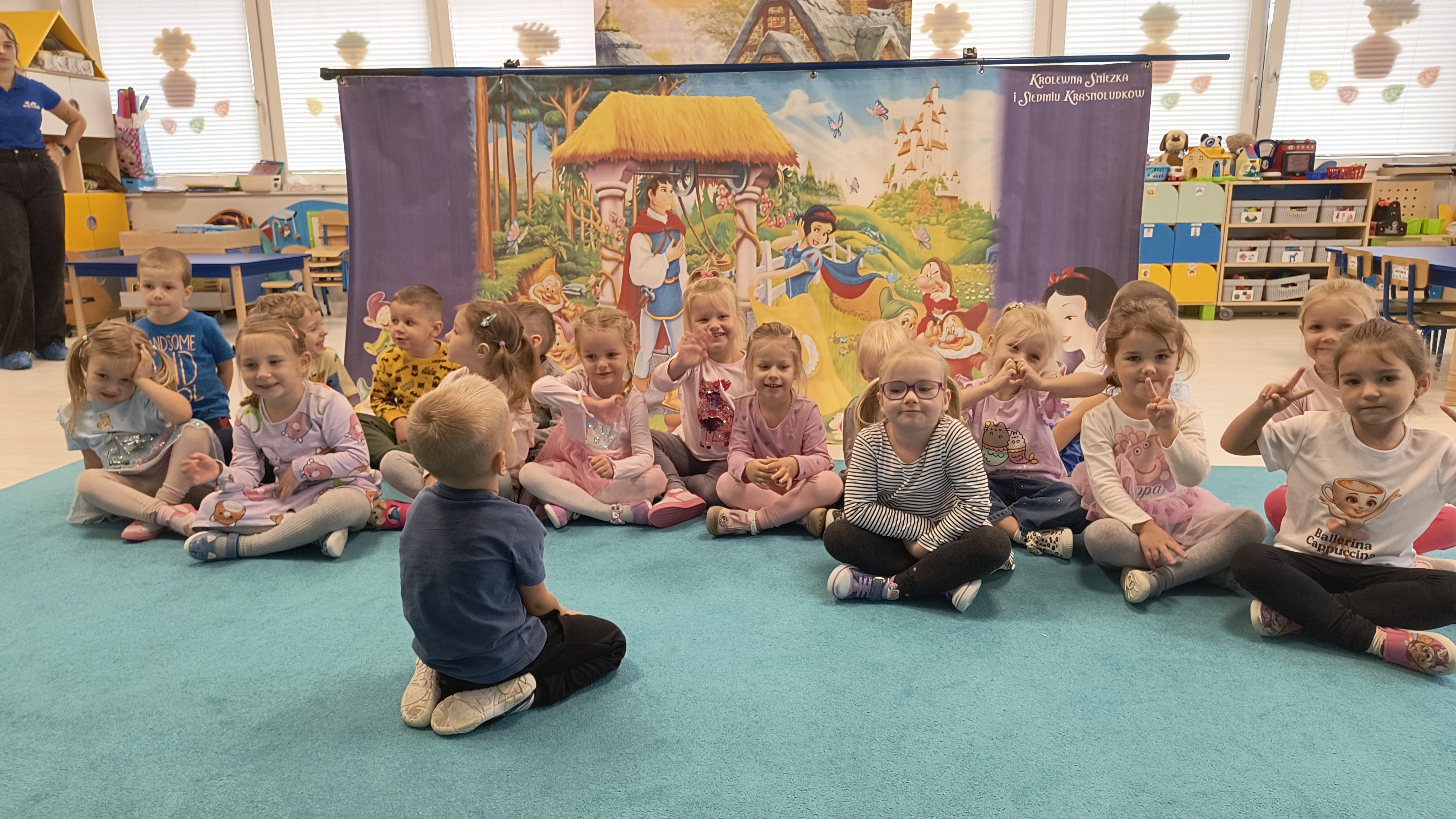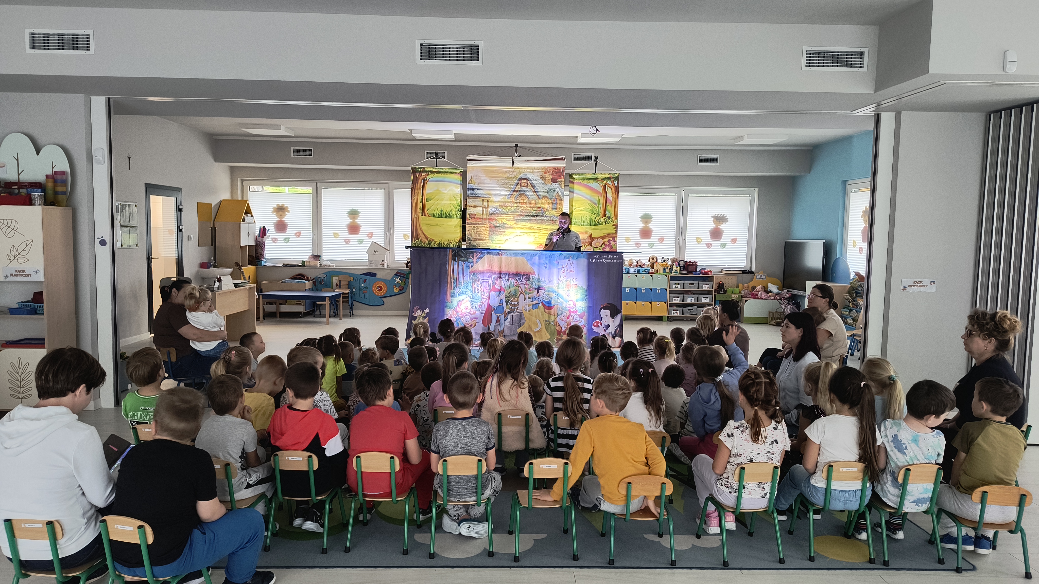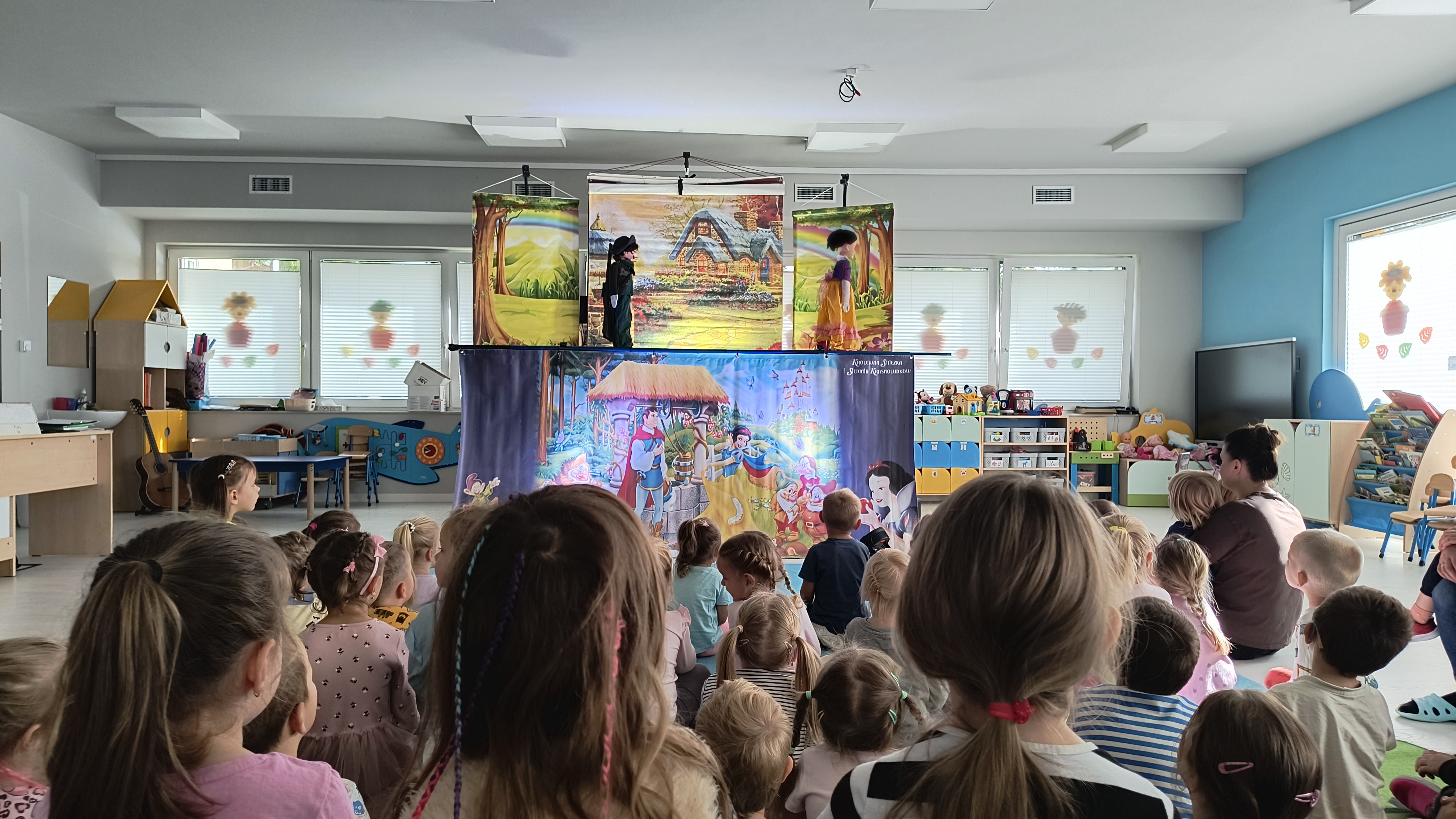 Dzieci z zapartym tchem śledziły losy dobrej i odważnej Śnieżki, złej Królowej oraz wesołych krasnoludków, którzy okazali się prawdziwymi przyjaciółmi. Kolorowe kukiełki, starannie przygotowana scenografia oraz nastrojowa muzyka przeniosły wszystkich w magiczny świat baśni. Aktorzy z firmy Aster wspaniale oddali emocje bohaterów, angażując dzieci do wspólnego przeżywania historii.