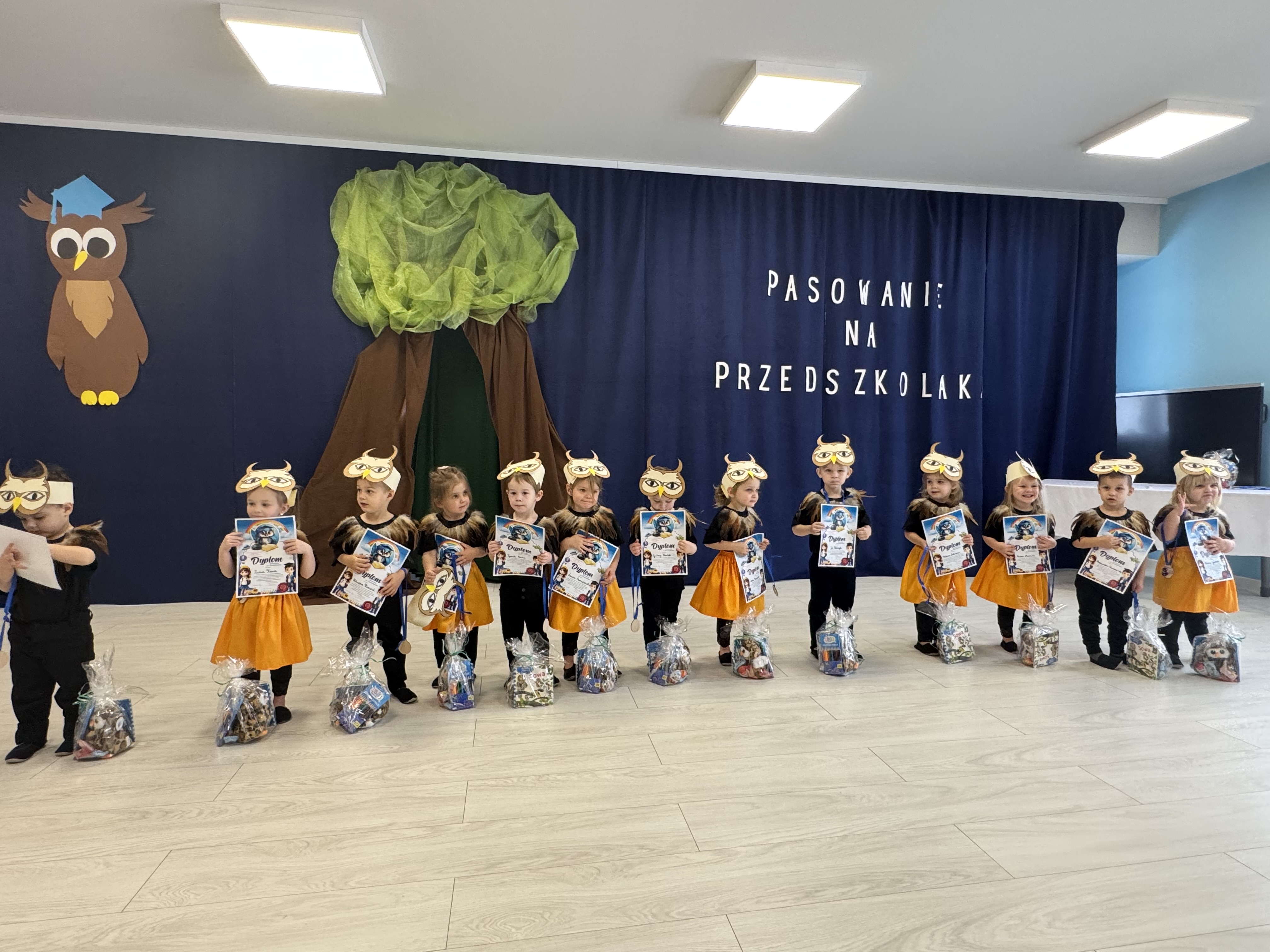 Po części artystycznej odbył się uroczysty akt pasowania, dzięki któremu wszystkie „Sówki” zostały oficjalnie przyjęte do grona przedszkolaków. Był to pełen emocji i wzruszeń dzień, który na długo pozostanie w pamięci dzieci i ich rodziców.