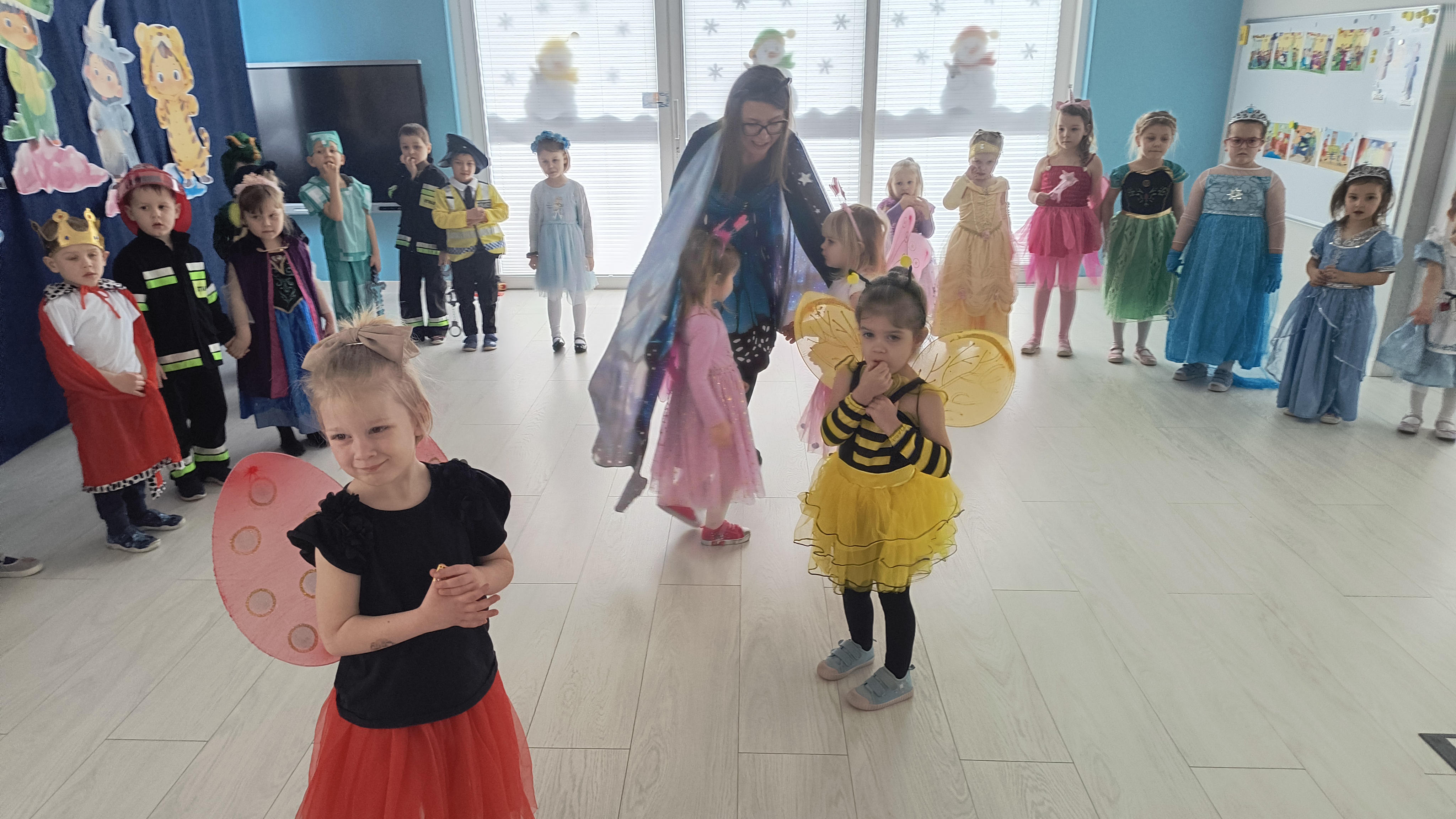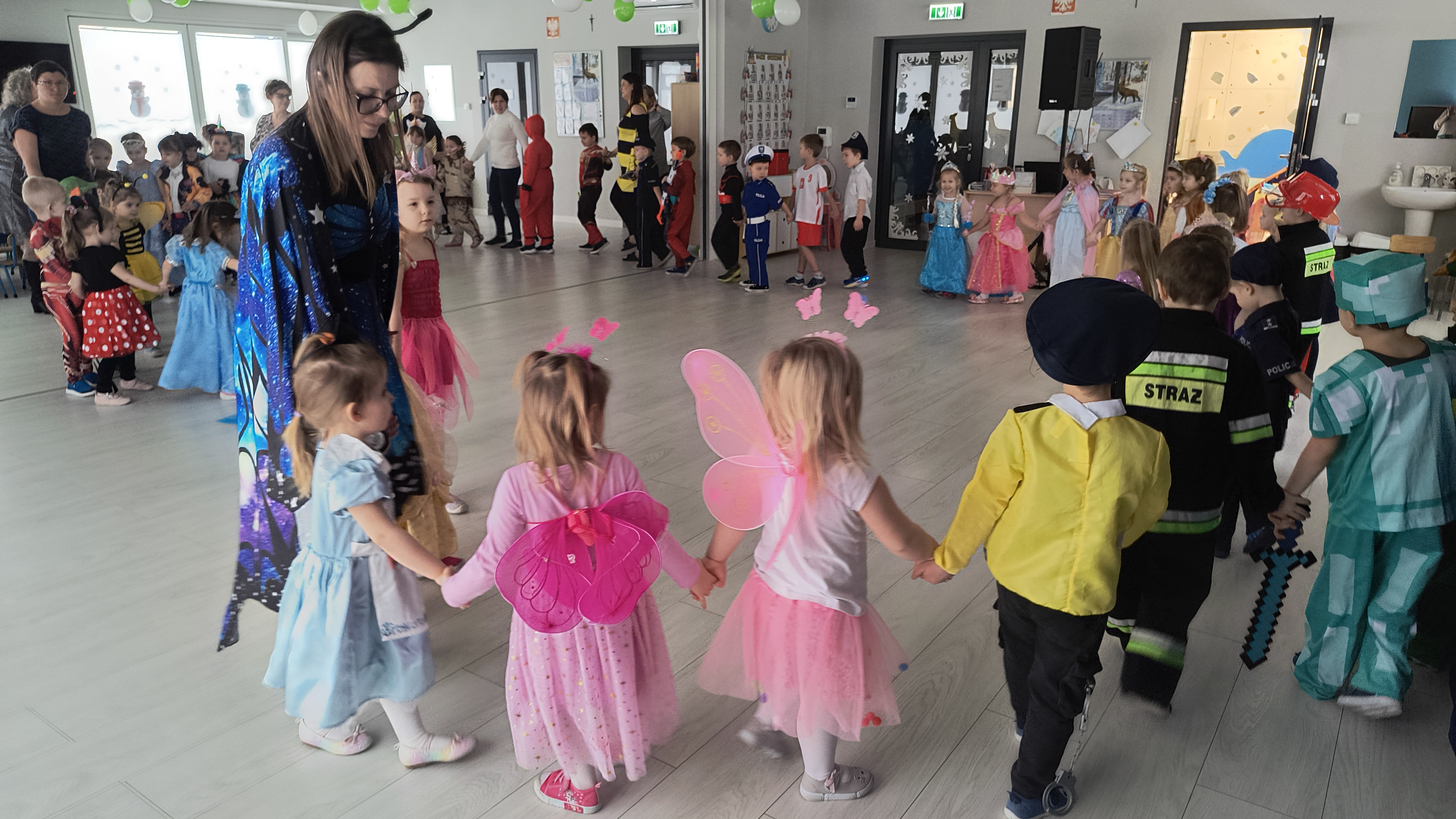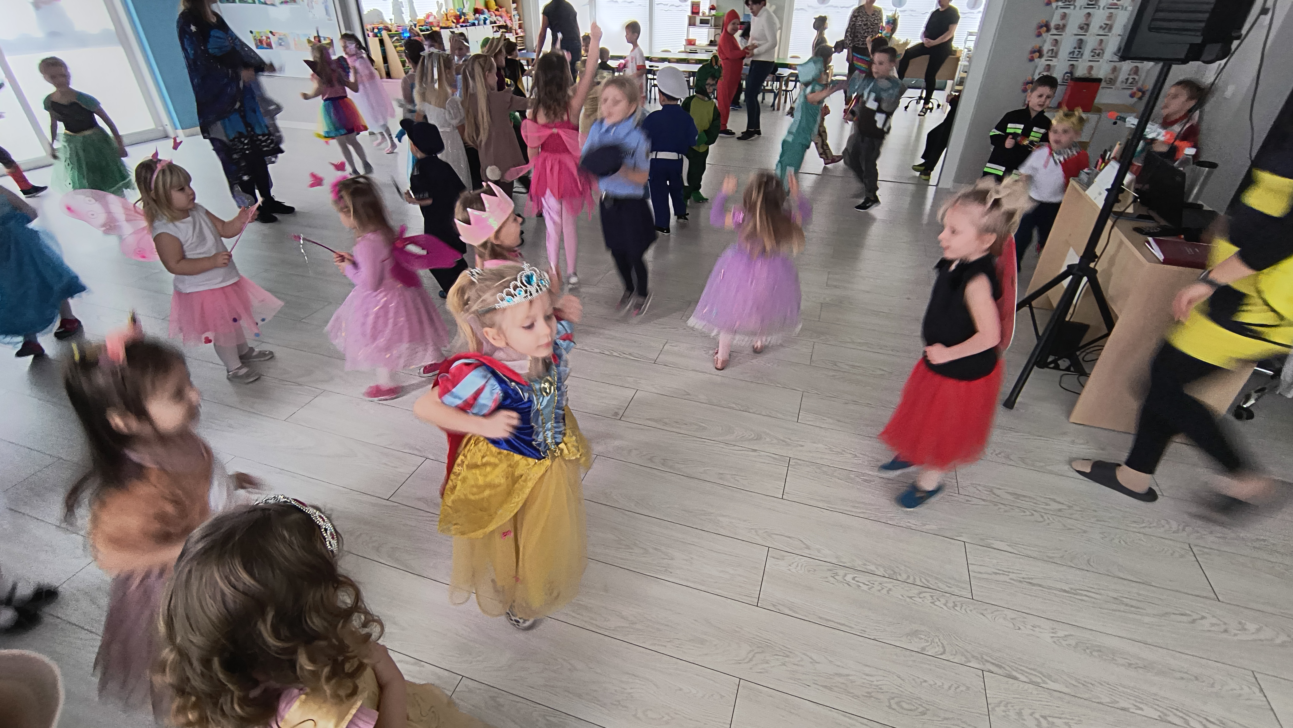 Przedszkolaki pojawiły się w przepięknych, pomysłowych przebraniach – wśród uczestników można było spotkać policjantów, strażaków, wróżki, księżniczki, zwierzątka oraz bohaterów z ulubionych bajek i filmów. Każdy kostium był wyjątkowy i dodawał magii temu niezwykłemu wydarzeniu.