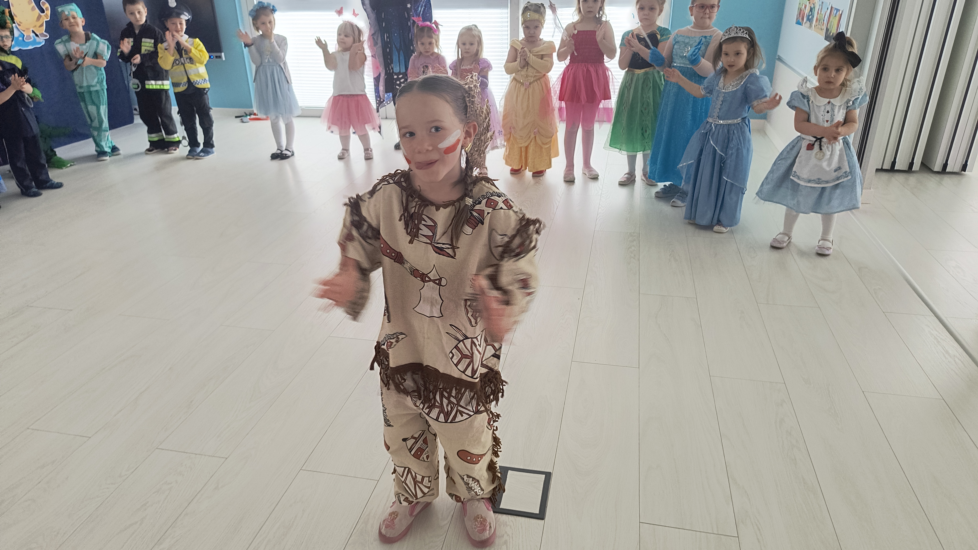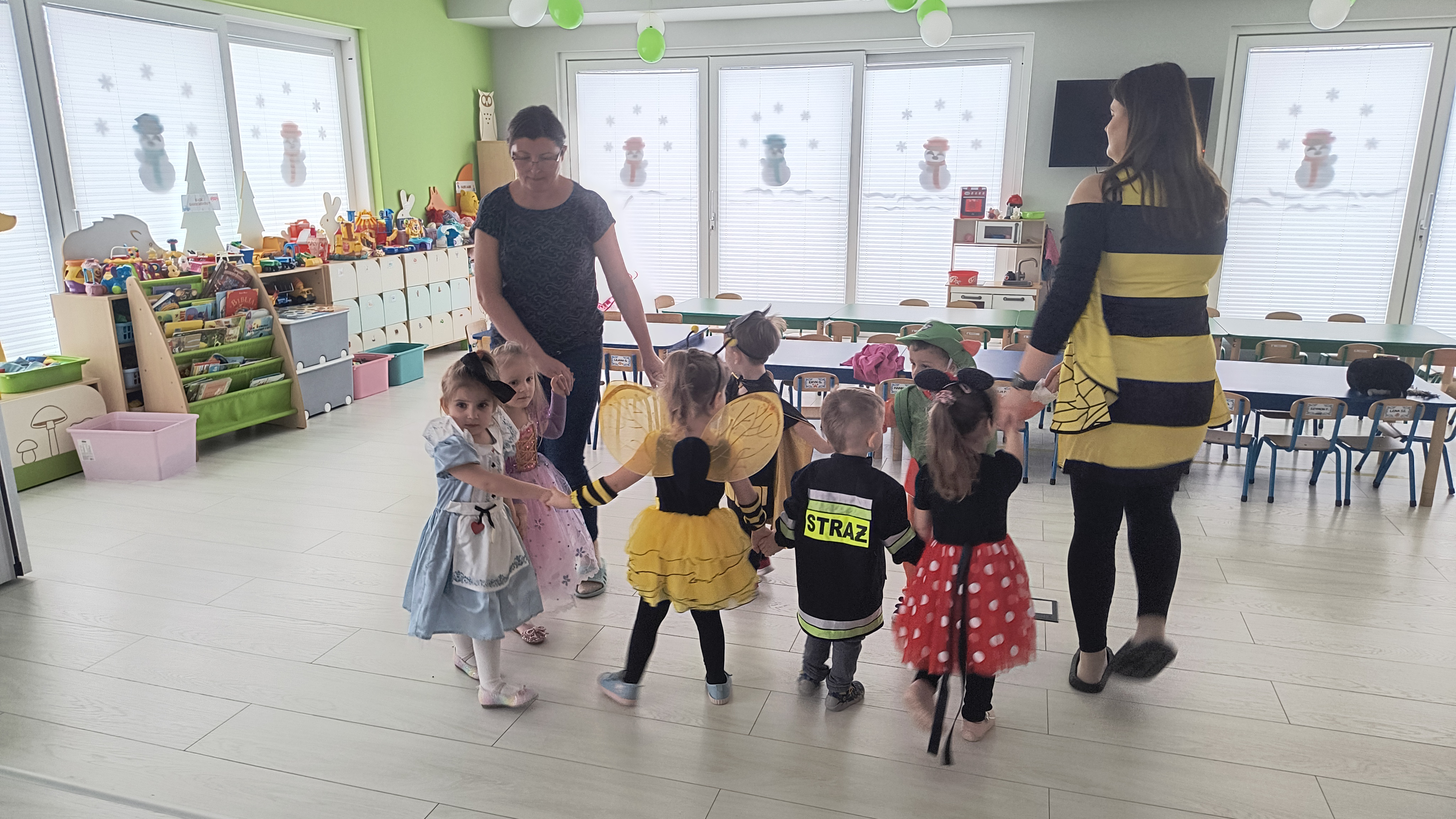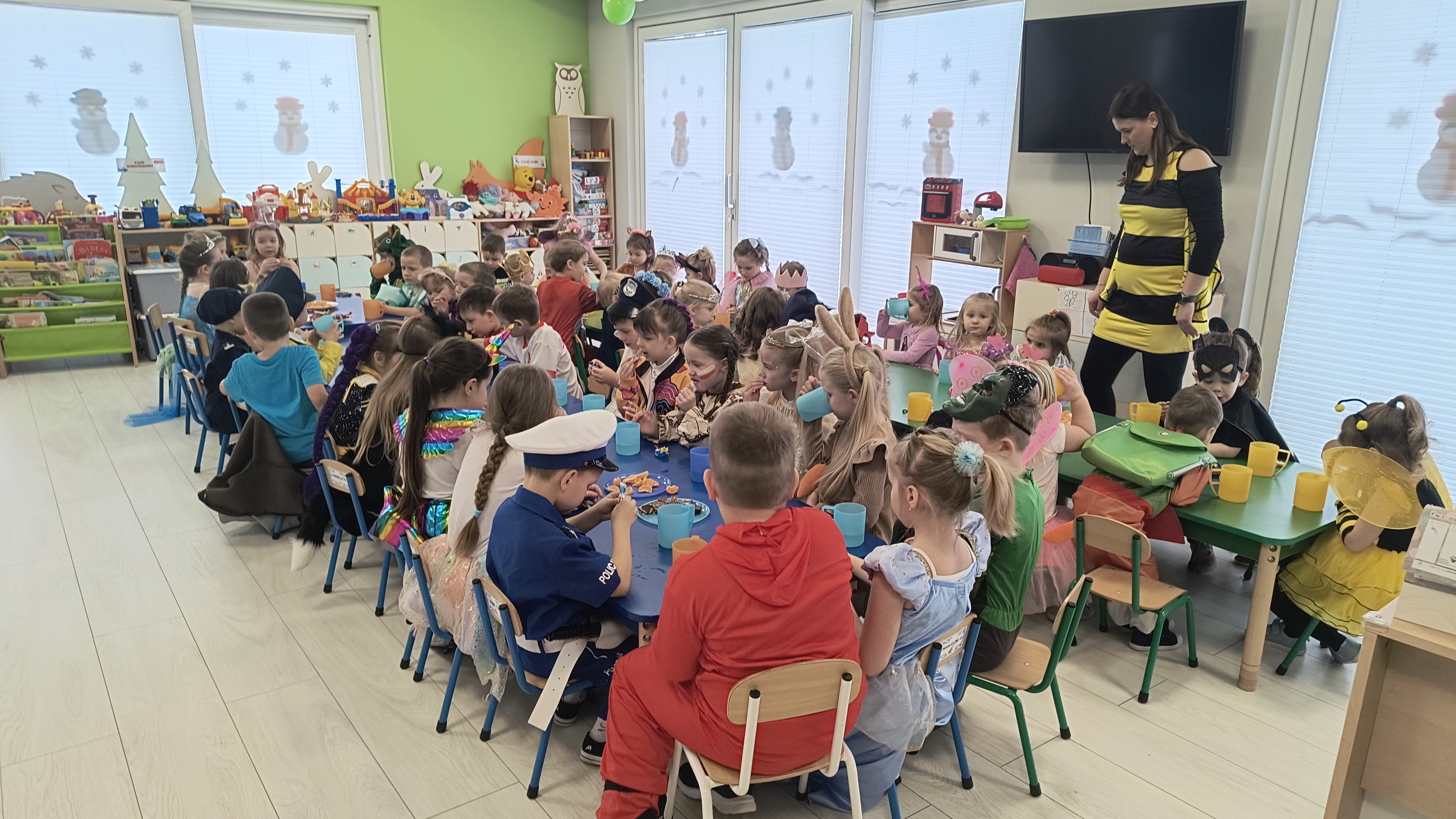 Przedszkolaki pojawiły się w przepięknych, pomysłowych przebraniach – wśród uczestników można było spotkać policjantów, strażaków, wróżki, księżniczki, zwierzątka oraz bohaterów z ulubionych bajek i filmów. Każdy kostium był wyjątkowy i dodawał magii temu niezwykłemu wydarzeniu.