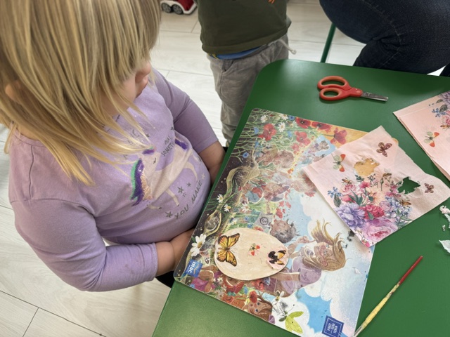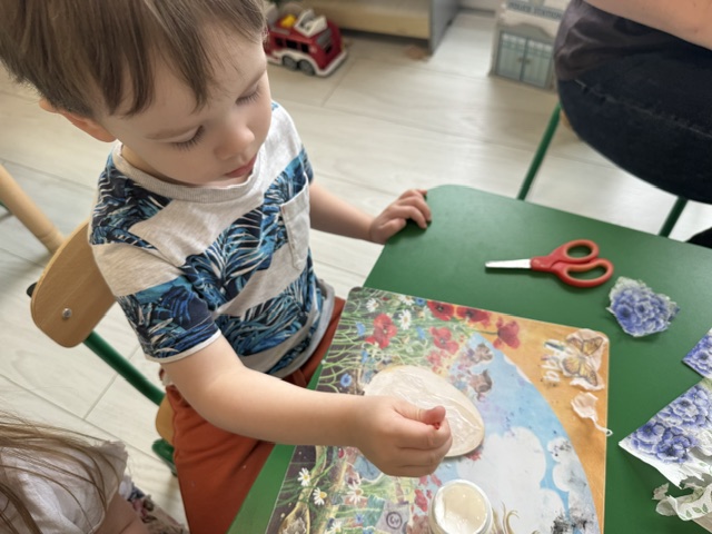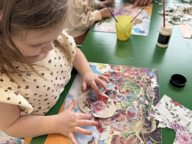 W naszej Grupie 3-latków „Sówki” odbyły się wyjątkowe warsztaty plastyczne z wykorzystaniem techniki decoupage. Dzieci miały okazję poznać tę ciekawą metodę zdobienia przedmiotów, rozwijając jednocześnie swoją kreatywność i zdolności manualne.