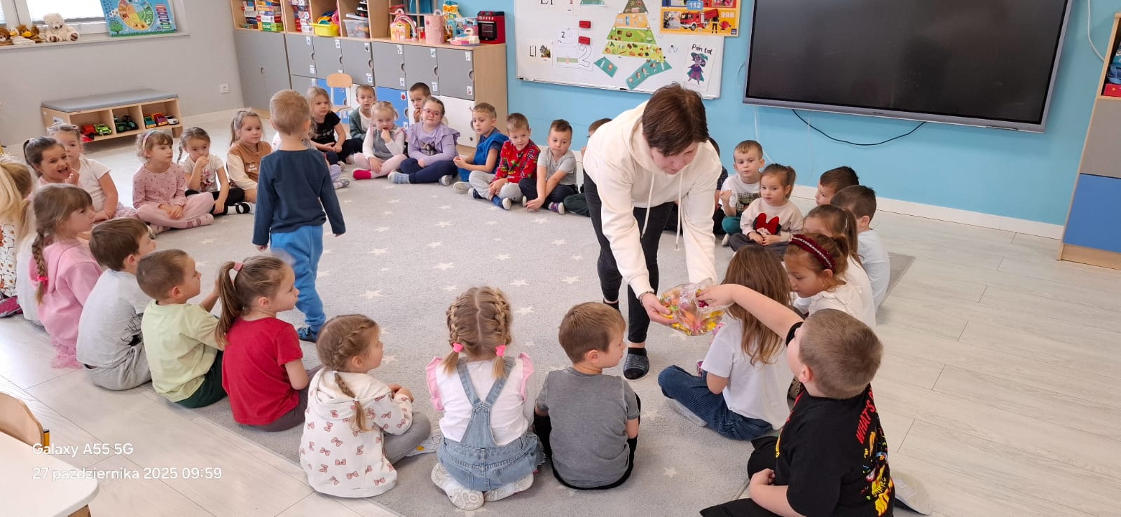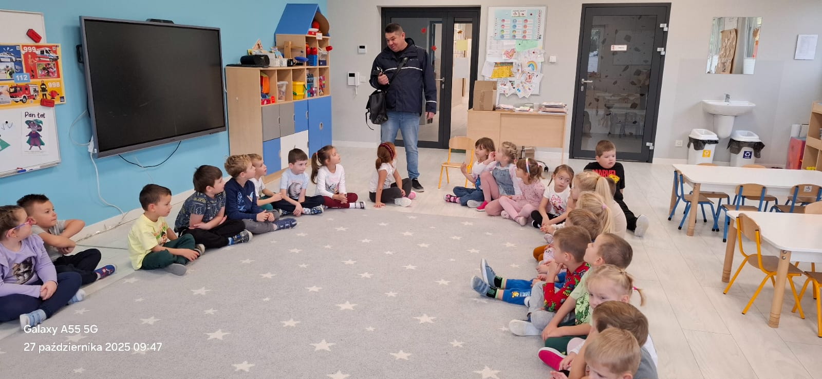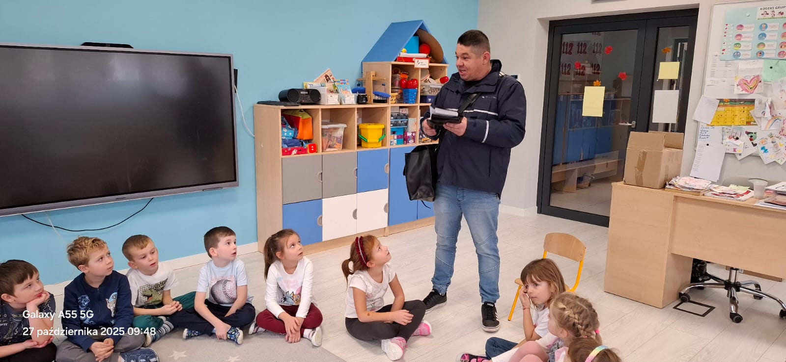 Spotkanie zakończyło się w bardzo miły sposób – Pan listonosz obdarował wszystkie dzieci cukierkami, za co serdecznie mu dziękujemy!