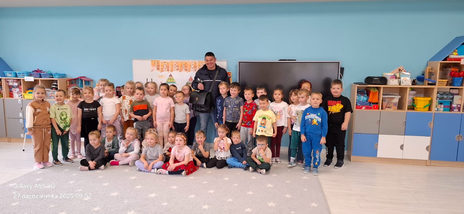 27 października nasze przedszkole odwiedził wyjątkowy gość – Pan listonosz Sławek. Dzieci z ogromnym zainteresowaniem wysłuchały opowieści o jego codziennej pracy, dowiedziały się, jak wygląda dzień listonosza i jakie zadania wykonuje, aby listy i paczki zawsze trafiały do adresatów na czas.