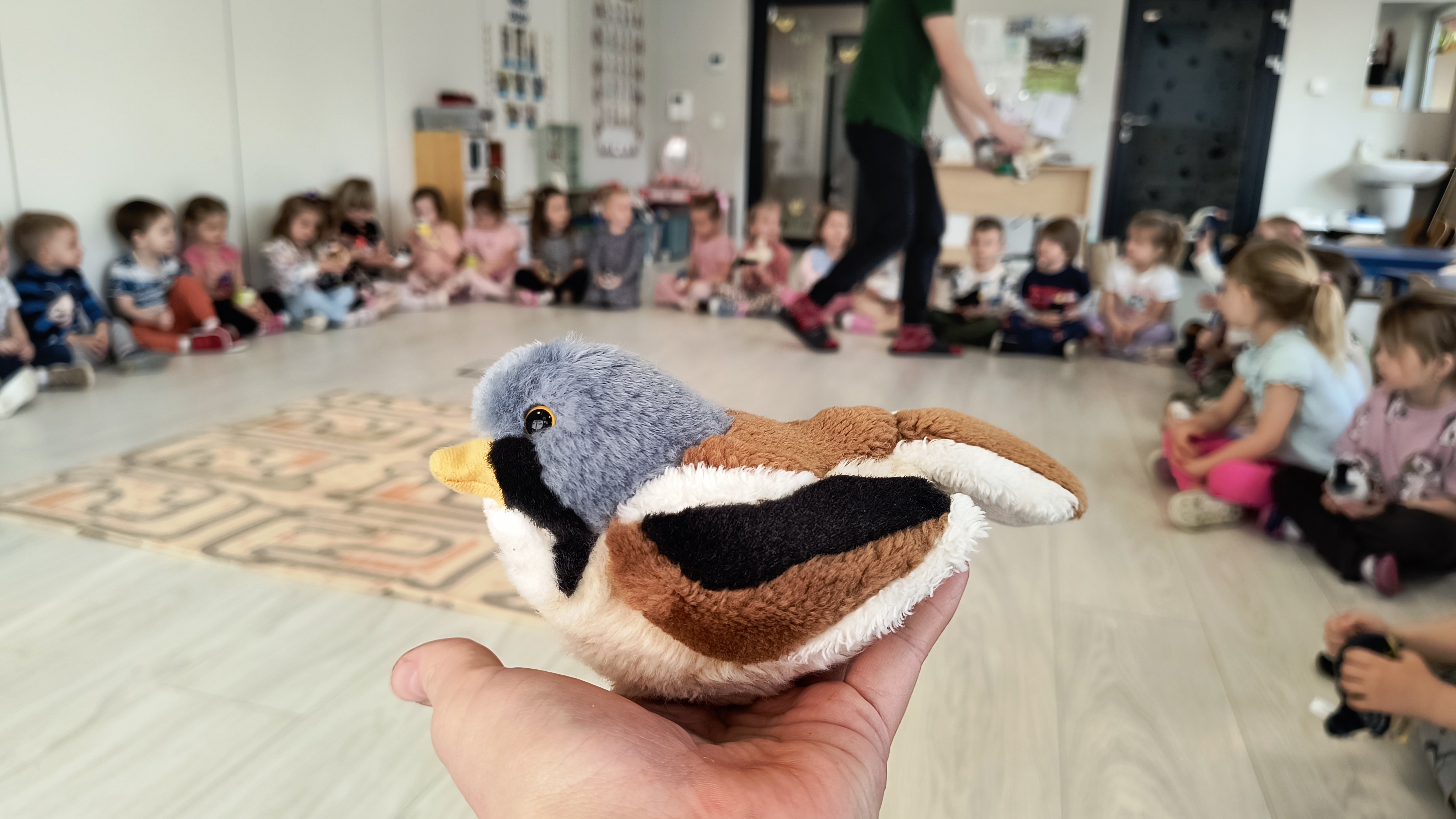 Dodatkową atrakcją było spotkanie z pluszowymi ptakami różnych gatunków – każde dziecko mogło wziąć je na ręce. Po ich naciśnięciu w sali rozlegał się śpiew ptaków, który tworzył niezwykłą atmosferę, niczym w prawdziwym lesie.