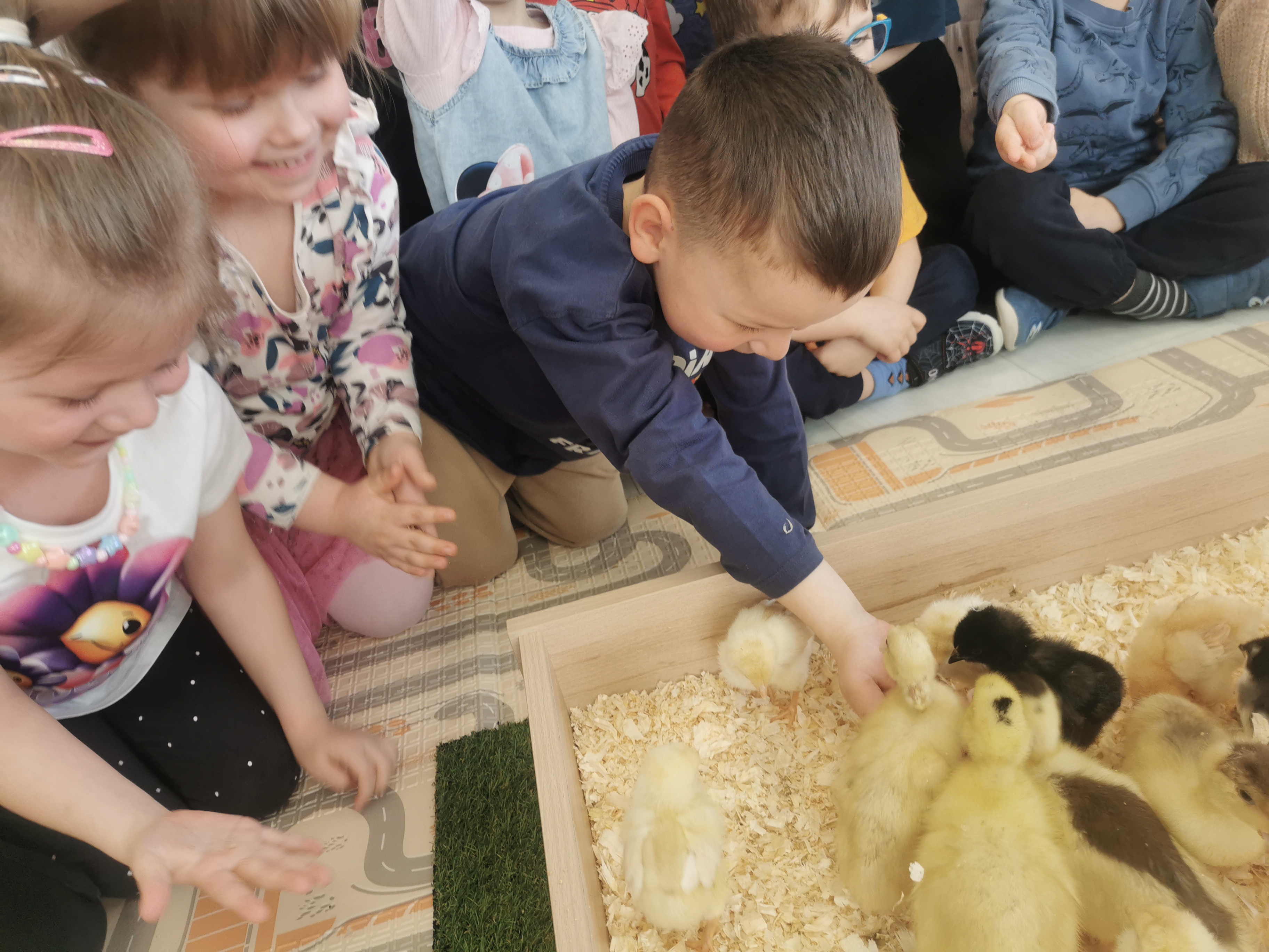 Najwięcej radości sprawiło najmłodszym bezpośrednie obcowanie ze zwierzętami. Dzieci z zachwytem zanurzały dłonie w miękkim futerku królika, a maleńkie pisklęta brały na ręce z czułością i wielką ostrożnością.