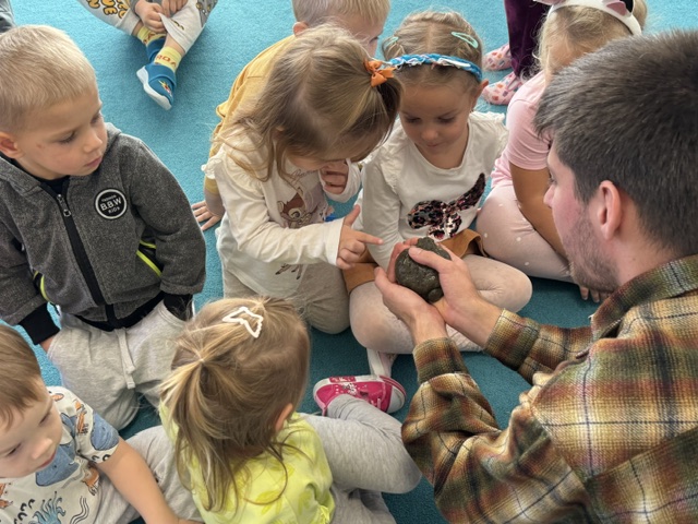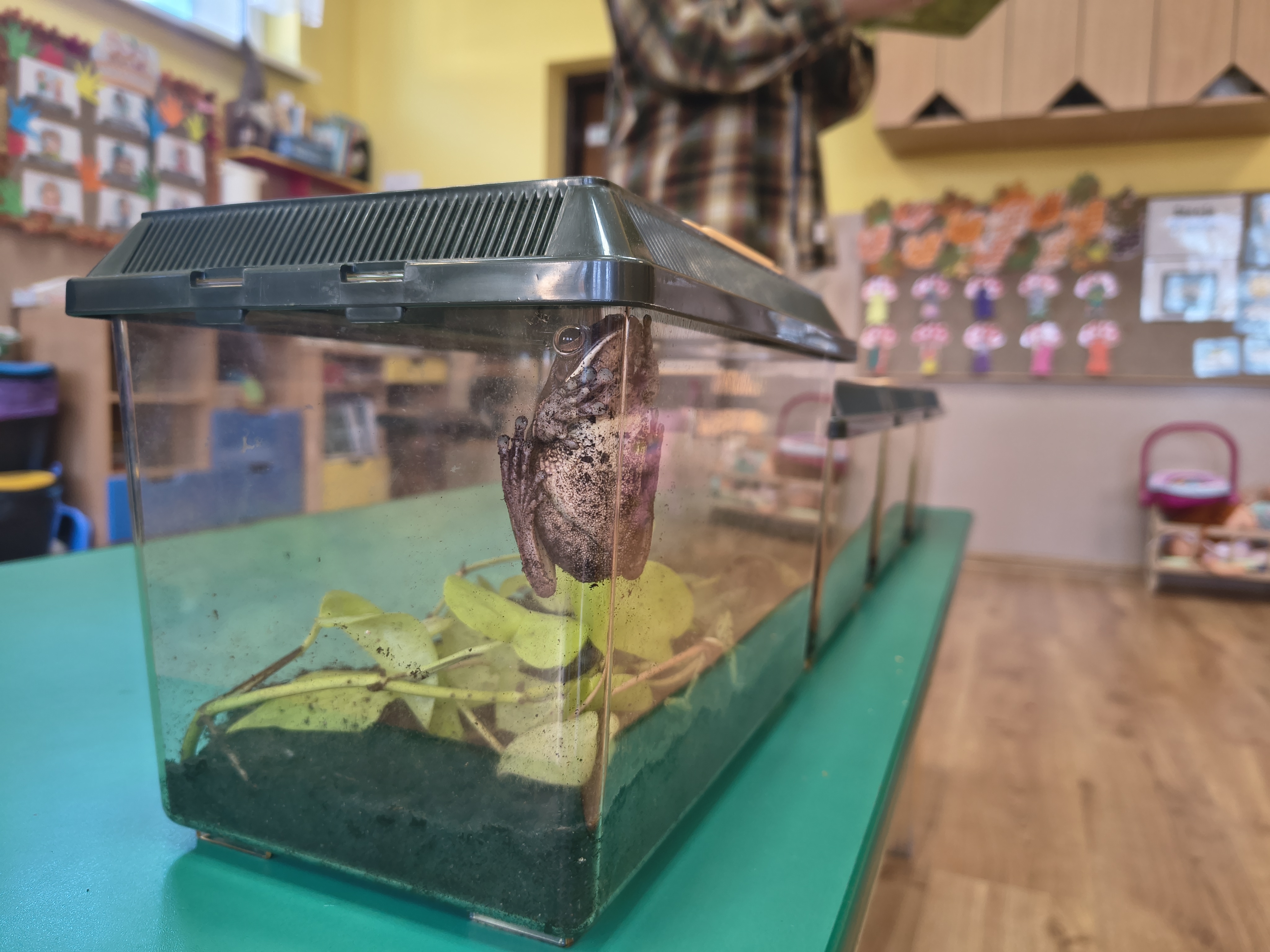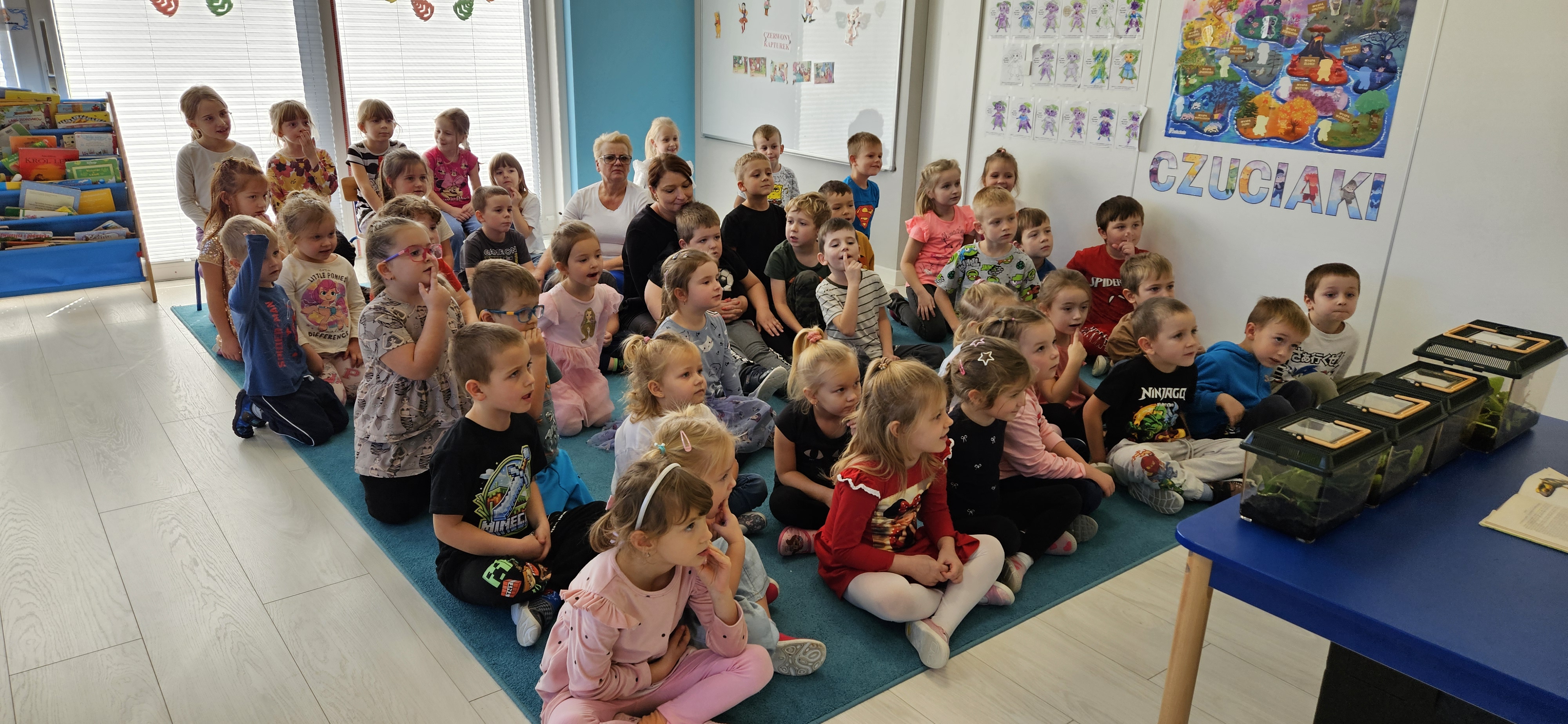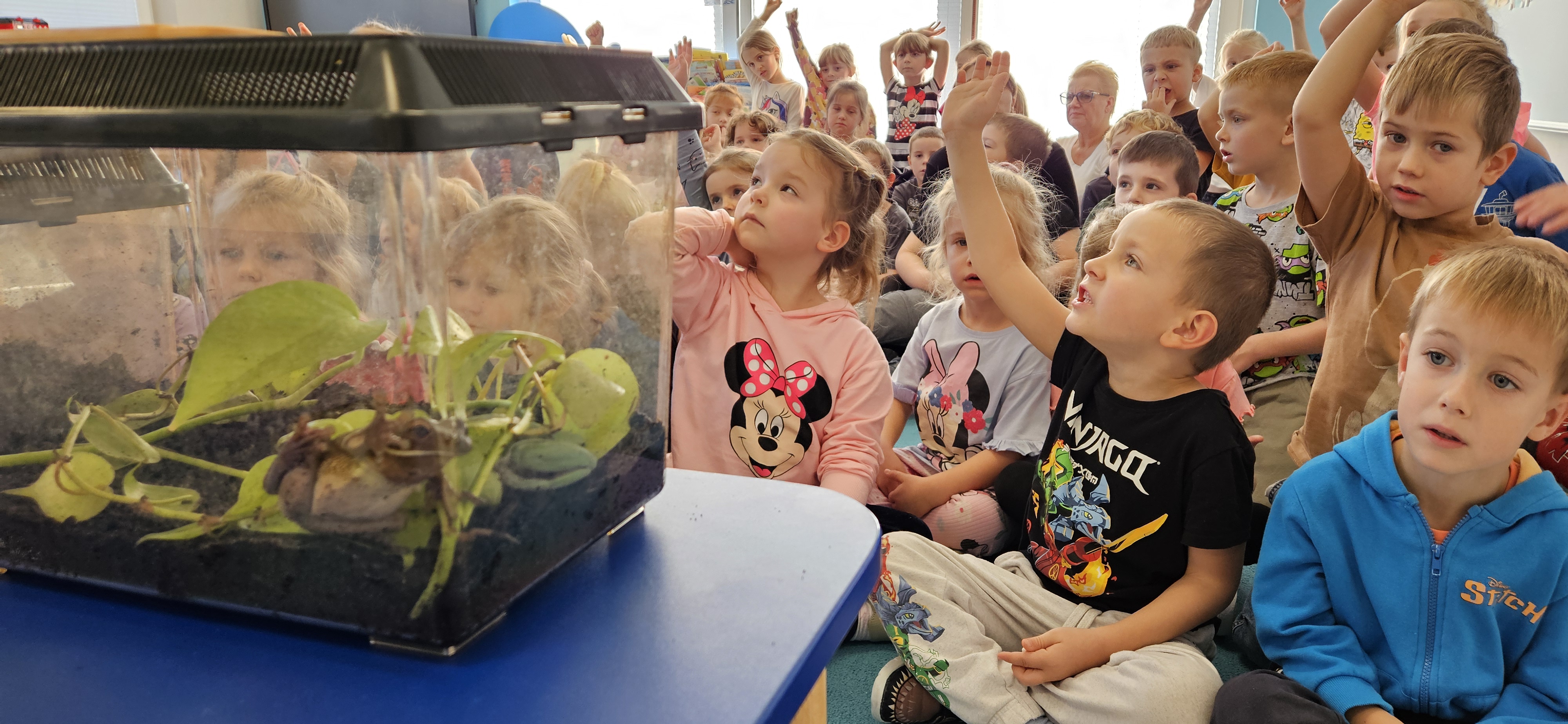 Dziś (04.11.25r.) w naszym przedszkolu odbyły się niezwykłe zajęcia przyrodnicze! Odwiedził nas pan, który przywiózł ze sobą różne gatunki gadów i płazów. Dzieci miały okazję zobaczyć z bliska m.in. żaby oraz dwa węże. Pan opowiedział, skąd pochodzą te zwierzęta, gdzie żyją i czym się odżywiają. Największą atrakcją było to, że przedszkolaki mogły nie tylko obserwować, ale także dotknąć niektórych zwierząt! Zajęcia dostarczyły wszystkim wielu emocji i ciekawych wiadomości o świecie przyrody.