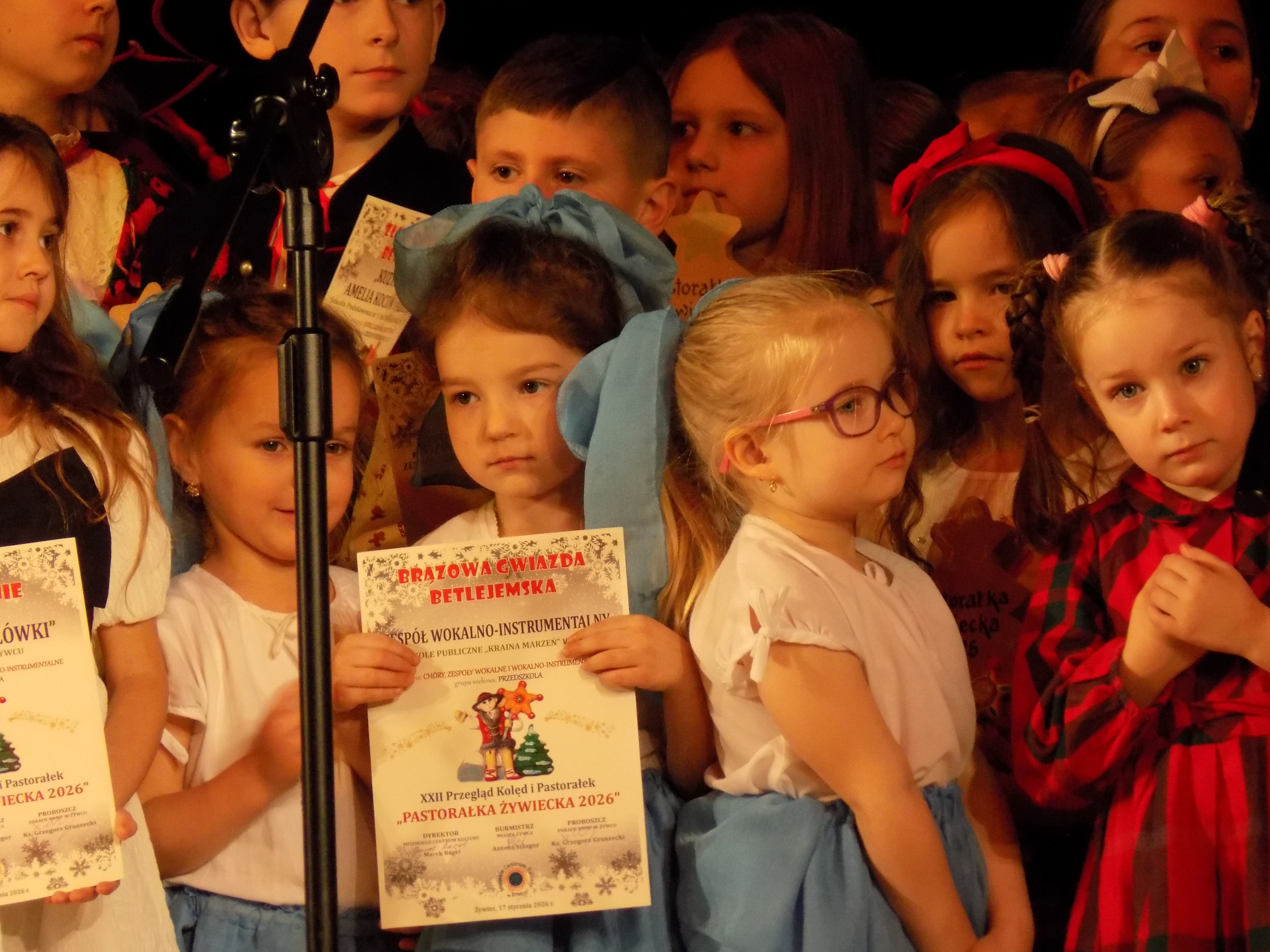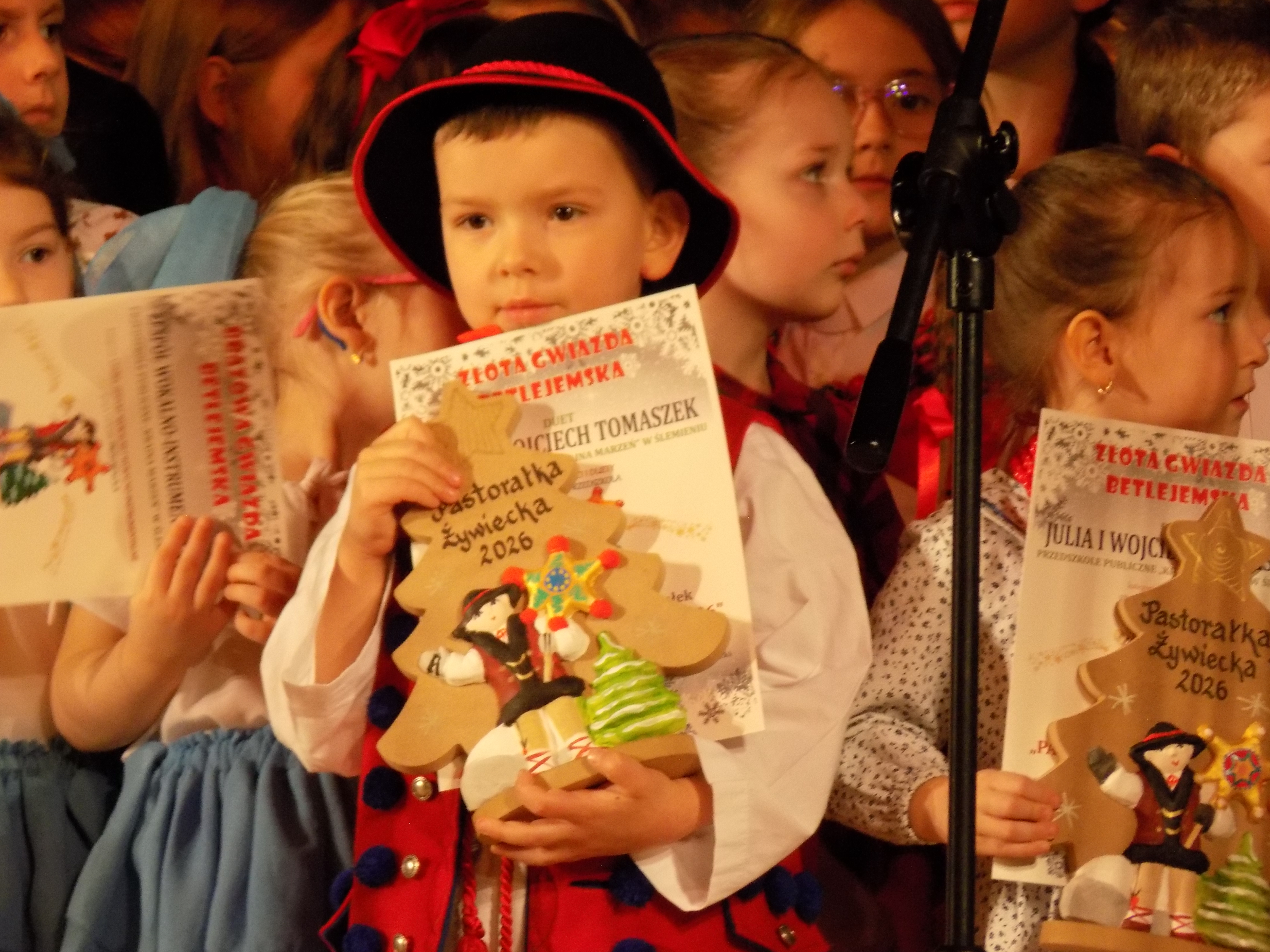 W dniach 13–14 stycznia 2026 r. odbył się XXII Przegląd Kolęd i Pastorałek „Pastorałka Żywiecka” – wyjątkowe wydarzenie, które co roku gromadzi młodych miłośników tradycji bożonarodzeniowych. Z ogromną radością informujemy, że dzieci z naszego przedszkola również wzięły w nim udział, odnosząc wspaniałe sukcesy.